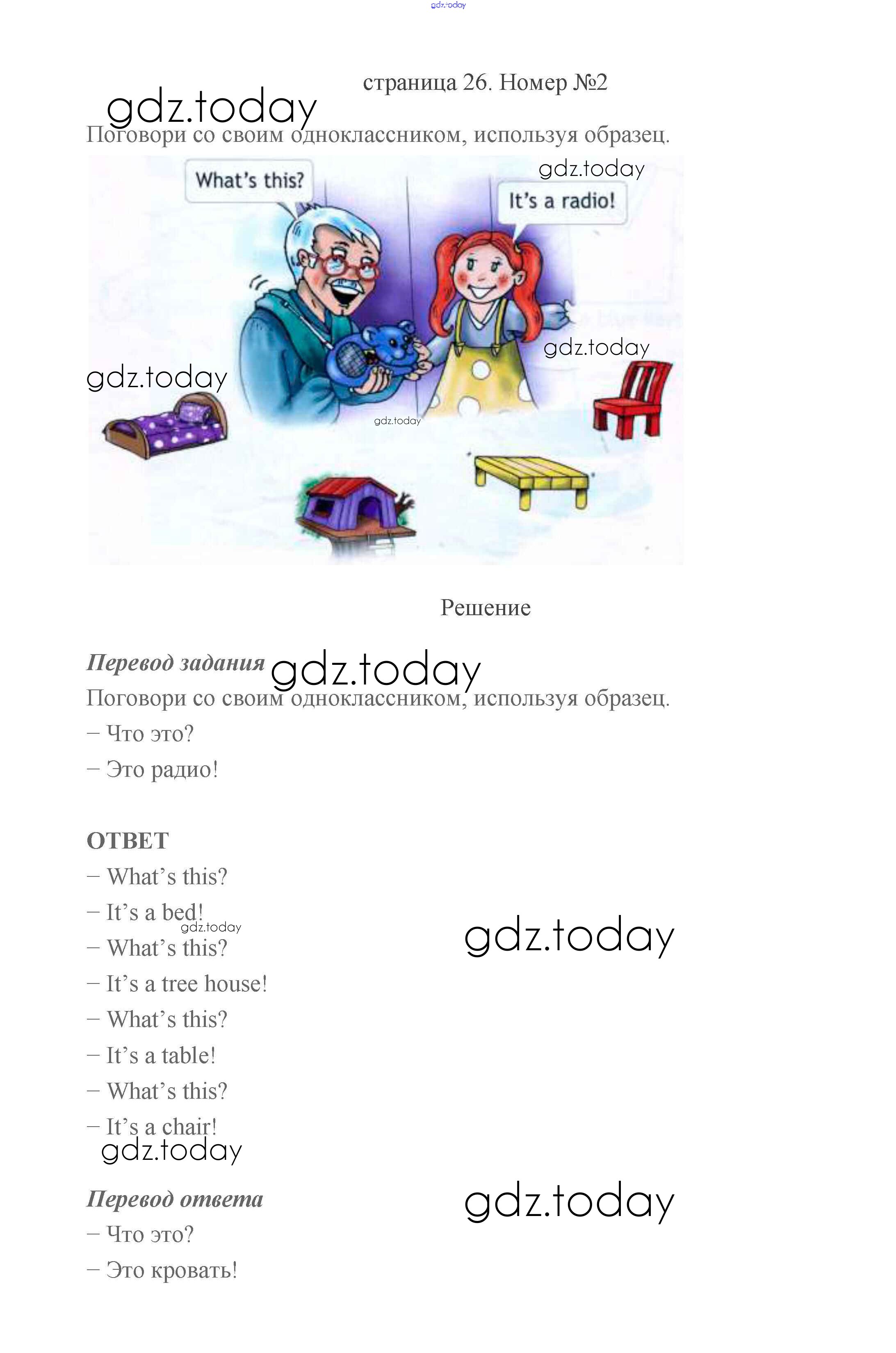 На страницах сайта gdz.today вы найдете учебный и вспомогательный материал, направленный на улучшения знаний школьной программы. ГДЗ - онлайн мир знаний Решение к части 1 (Страницы) 26 Учебнику по Английскому языку для 2 класса Быкова, Дули Просвещение Spotlight 2021