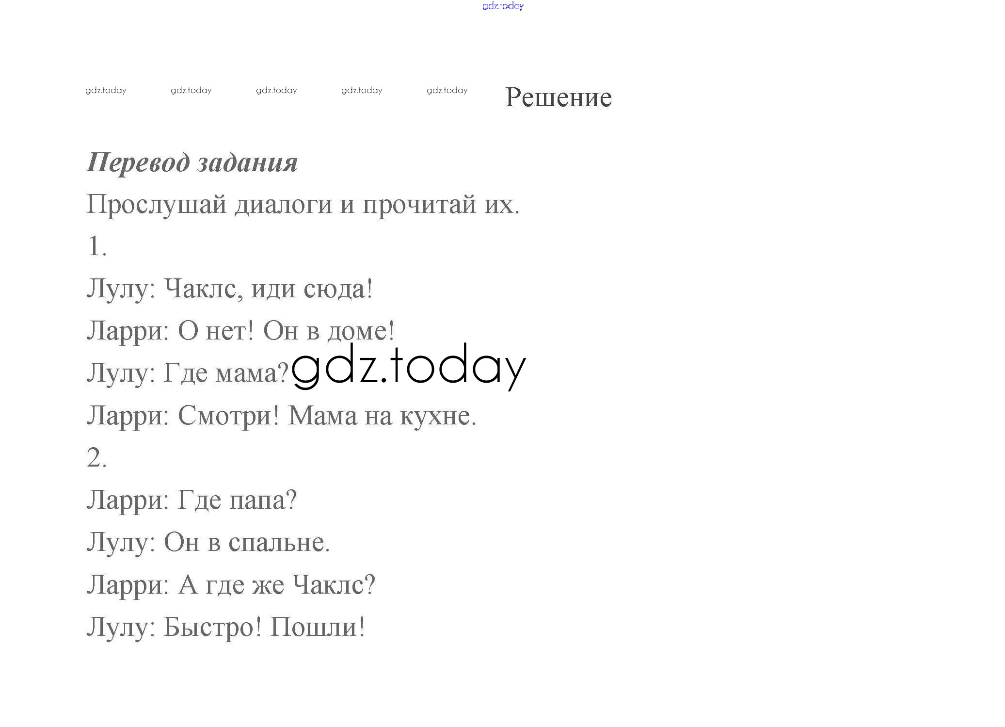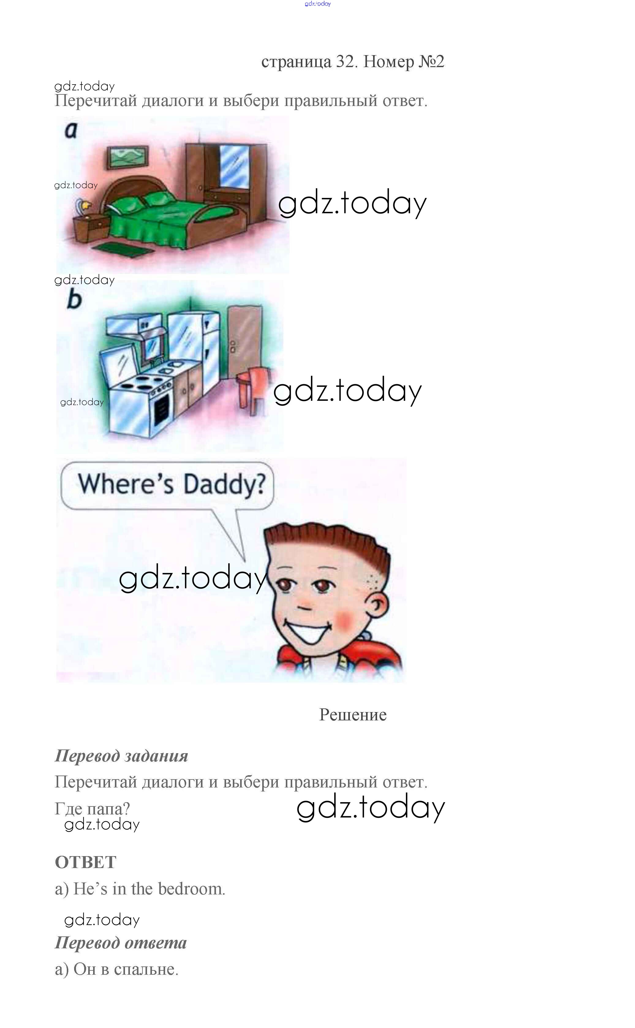 На страницах сайта gdz.today вы найдете учебный и вспомогательный материал, направленный на улучшения знаний школьной программы. ГДЗ - онлайн мир знаний Решение к части 1 (Страницы) 32 Учебнику по Английскому языку для 2 класса Быкова, Дули Просвещение Spotlight 2021