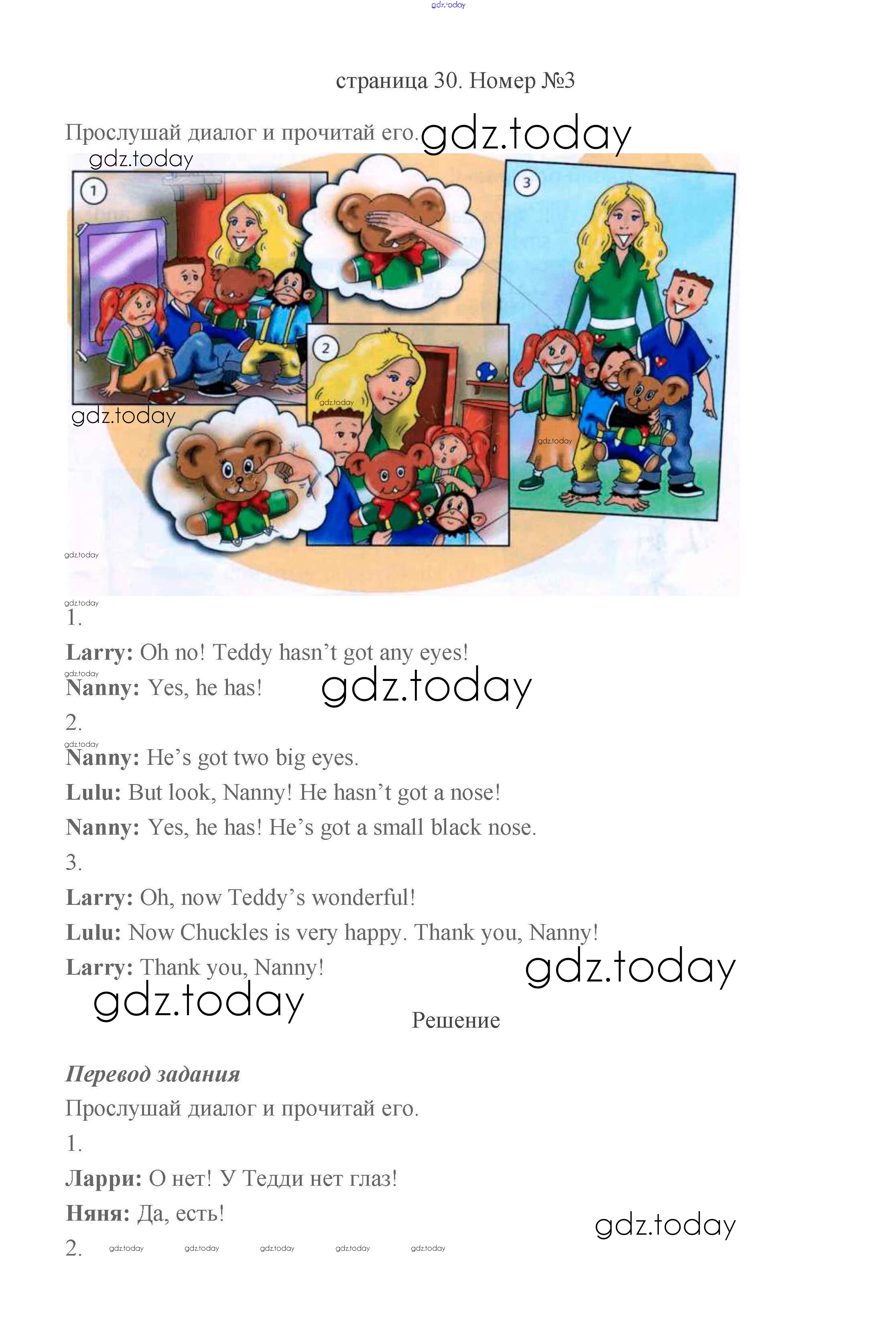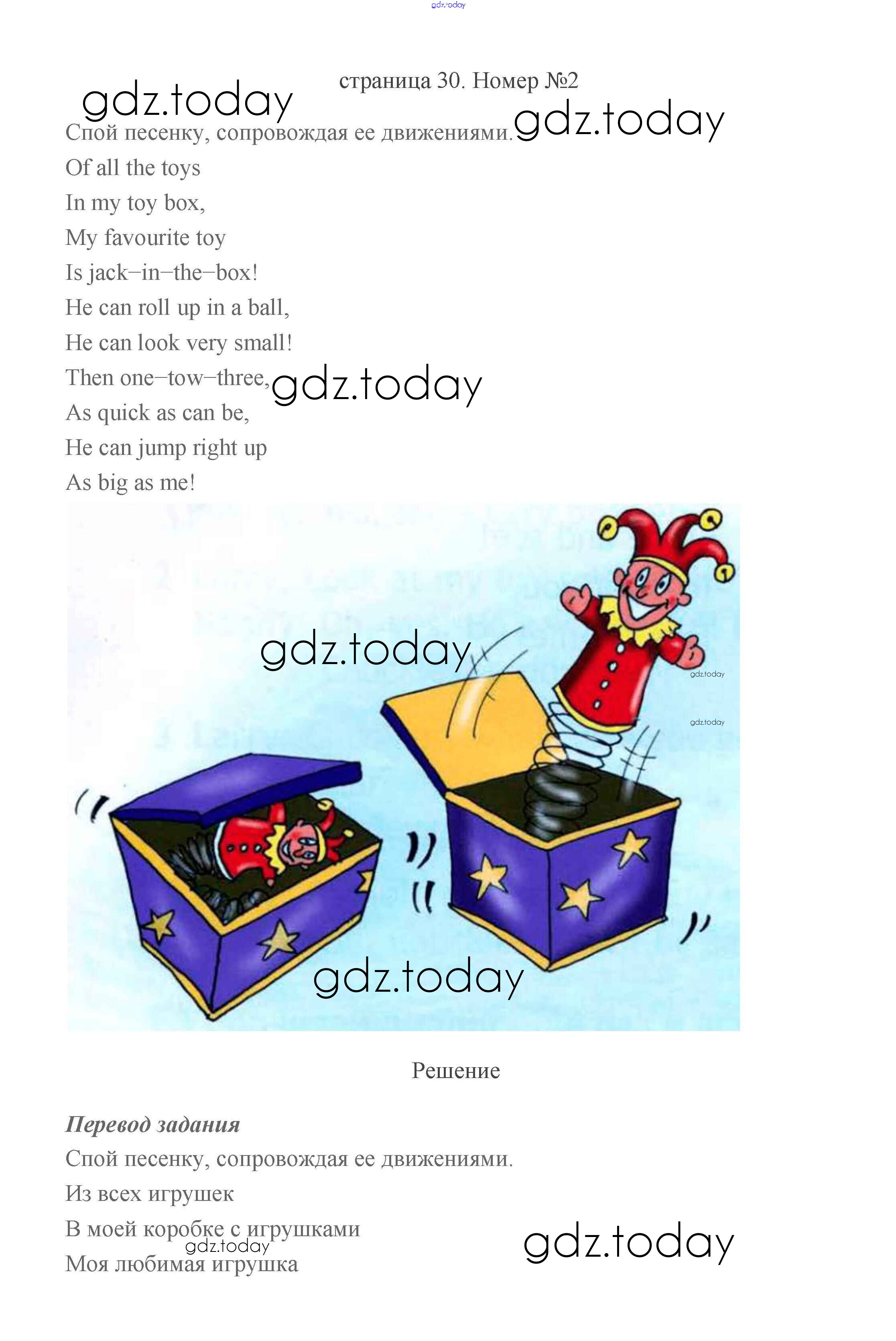 На страницах сайта gdz.today вы найдете учебный и вспомогательный материал, направленный на улучшения знаний школьной программы. ГДЗ - онлайн мир знаний Решение к части2 (Страницы) 30 Учебнику по Английскому языку для 2 класса Быкова, Дули Просвещение Spotlight 2021