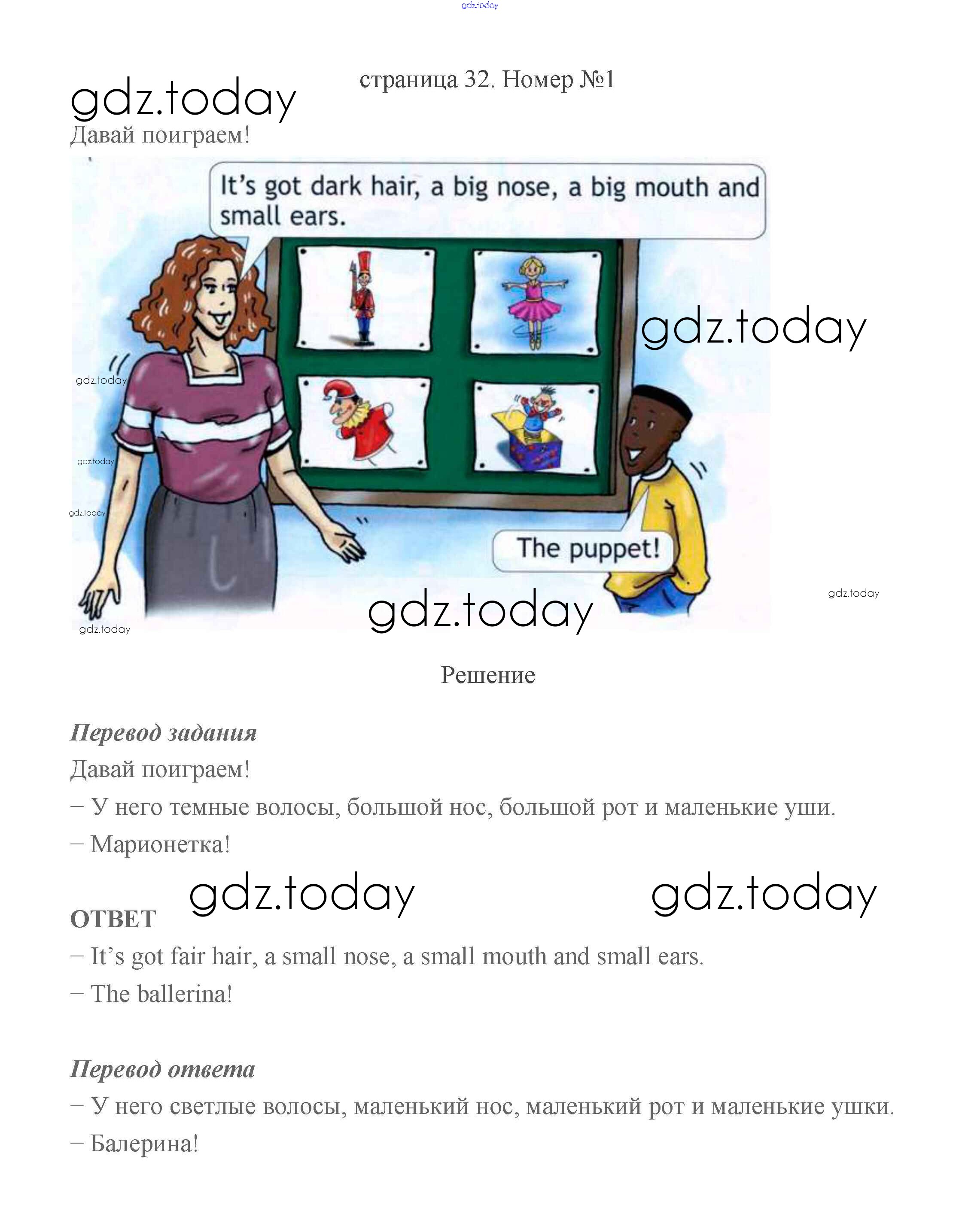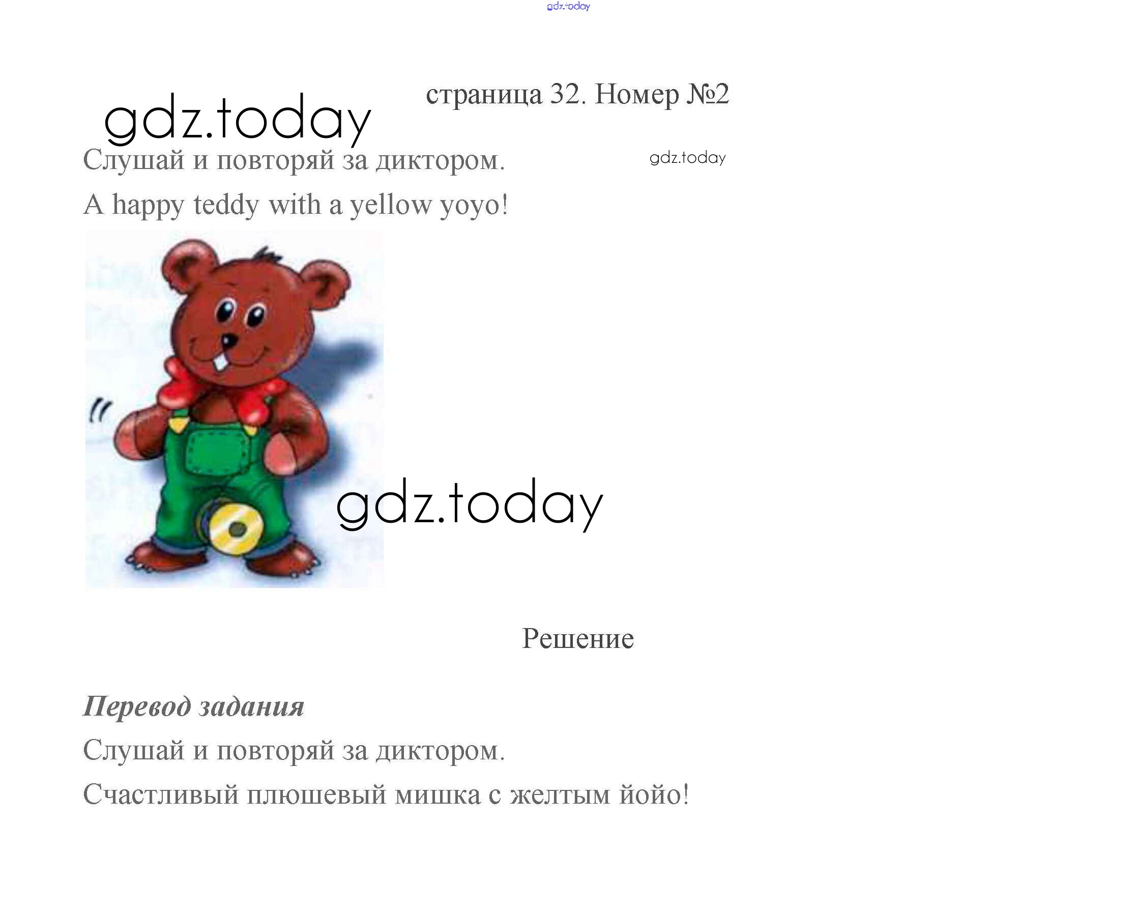 На страницах сайта gdz.today вы найдете учебный и вспомогательный материал, направленный на улучшения знаний школьной программы. ГДЗ - онлайн мир знаний Решение к части2 (Страницы) 32 Учебнику по Английскому языку для 2 класса Быкова, Дули Просвещение Spotlight 2021