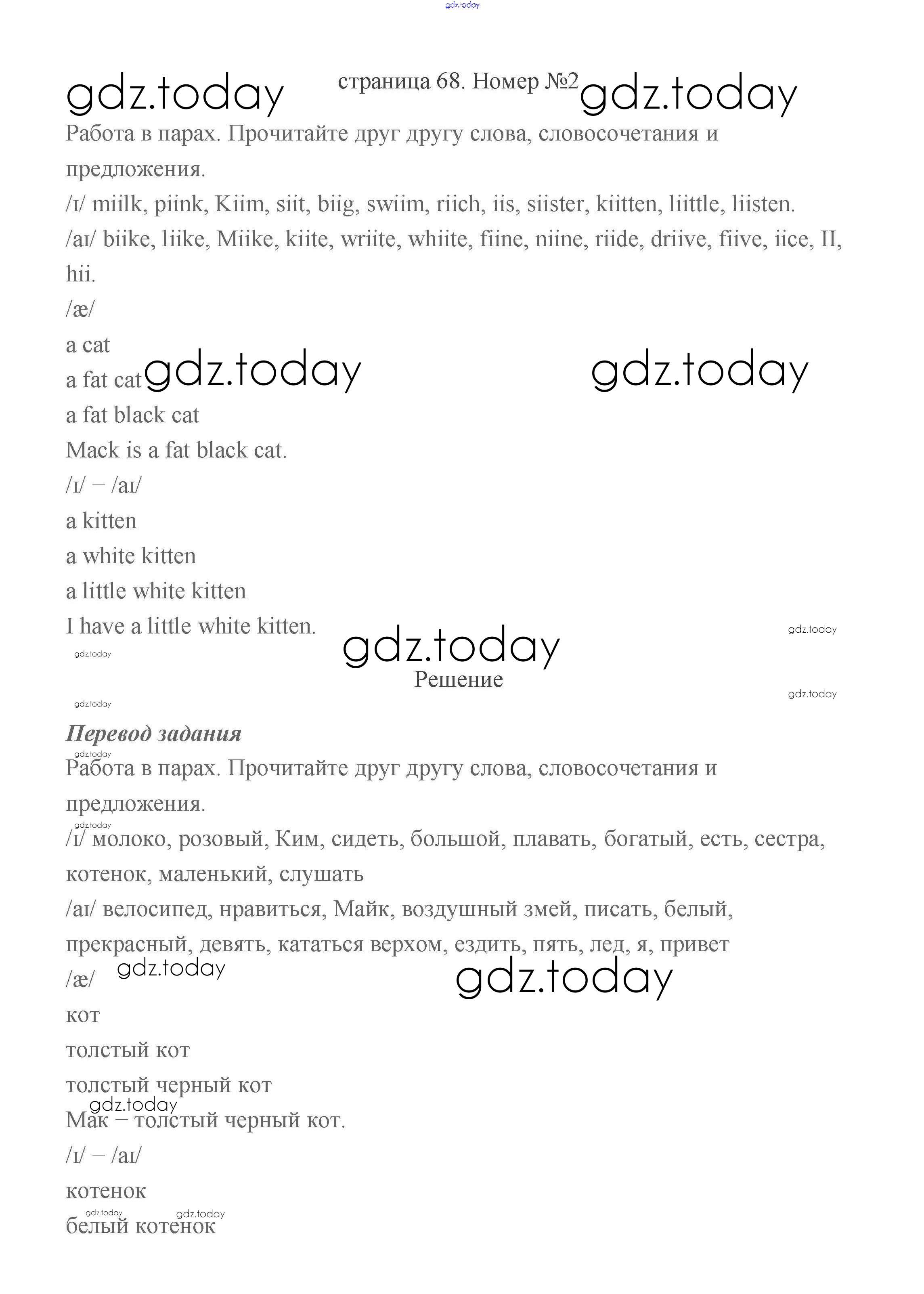 На страницах сайта gdz.today вы найдете учебный и вспомогательный материал, направленный на улучшения знаний школьной программы. ГДЗ - онлайн мир знаний Решение к части2 (Страницы) 68 Учебнику по Английскому языку для 2 класса Быкова, Дули Просвещение Spotlight 2021