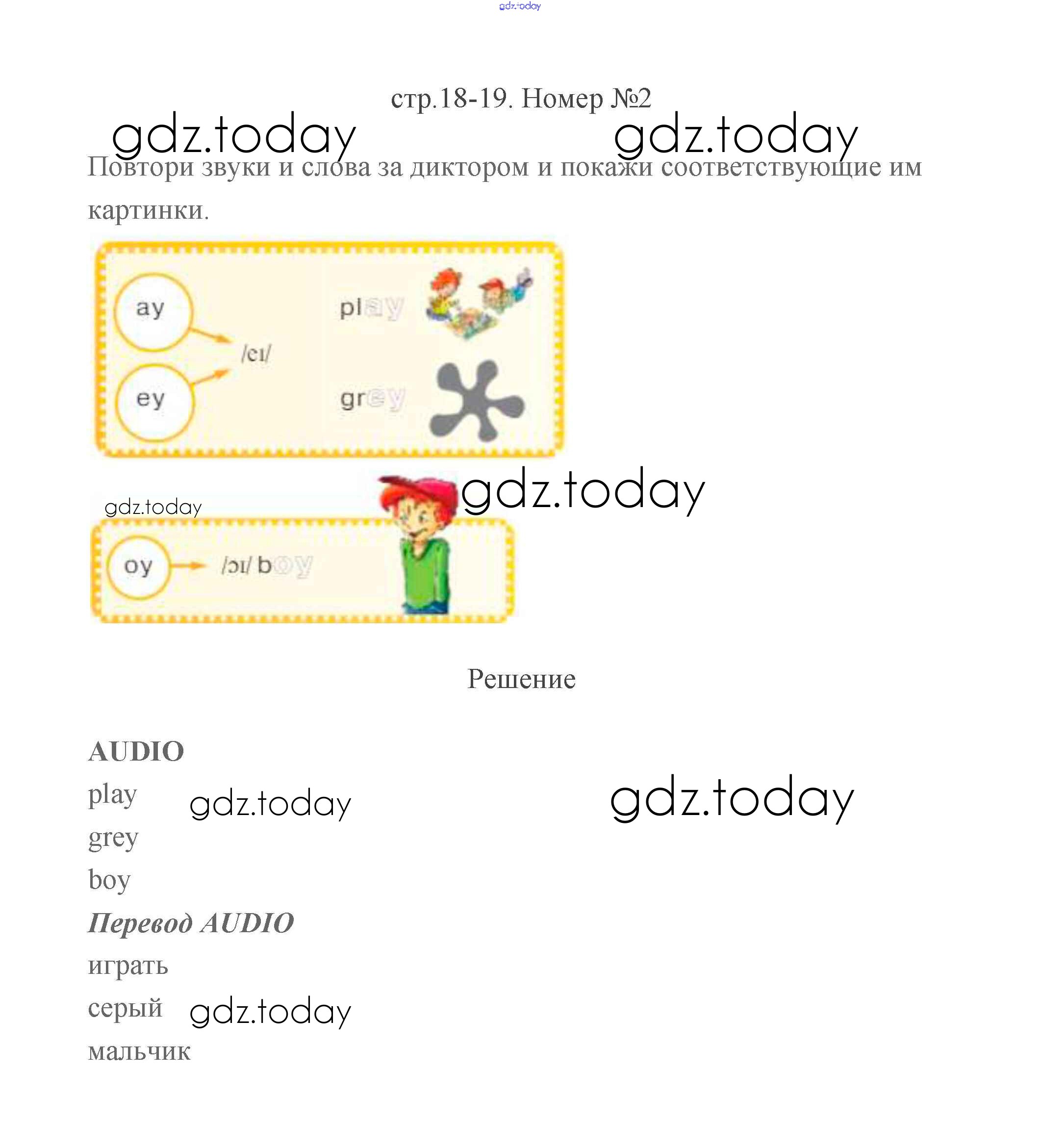 На страницах сайта gdz.today вы найдете учебный и вспомогательный материал, направленный на улучшения знаний школьной программы. ГДЗ - онлайн мир знаний Решение к части 1 (Страницы) 18-19 Учебнику по Английскому языку для 2 класса Баранова, Эванс Углубленный уровень Просвещение Starlight 2016