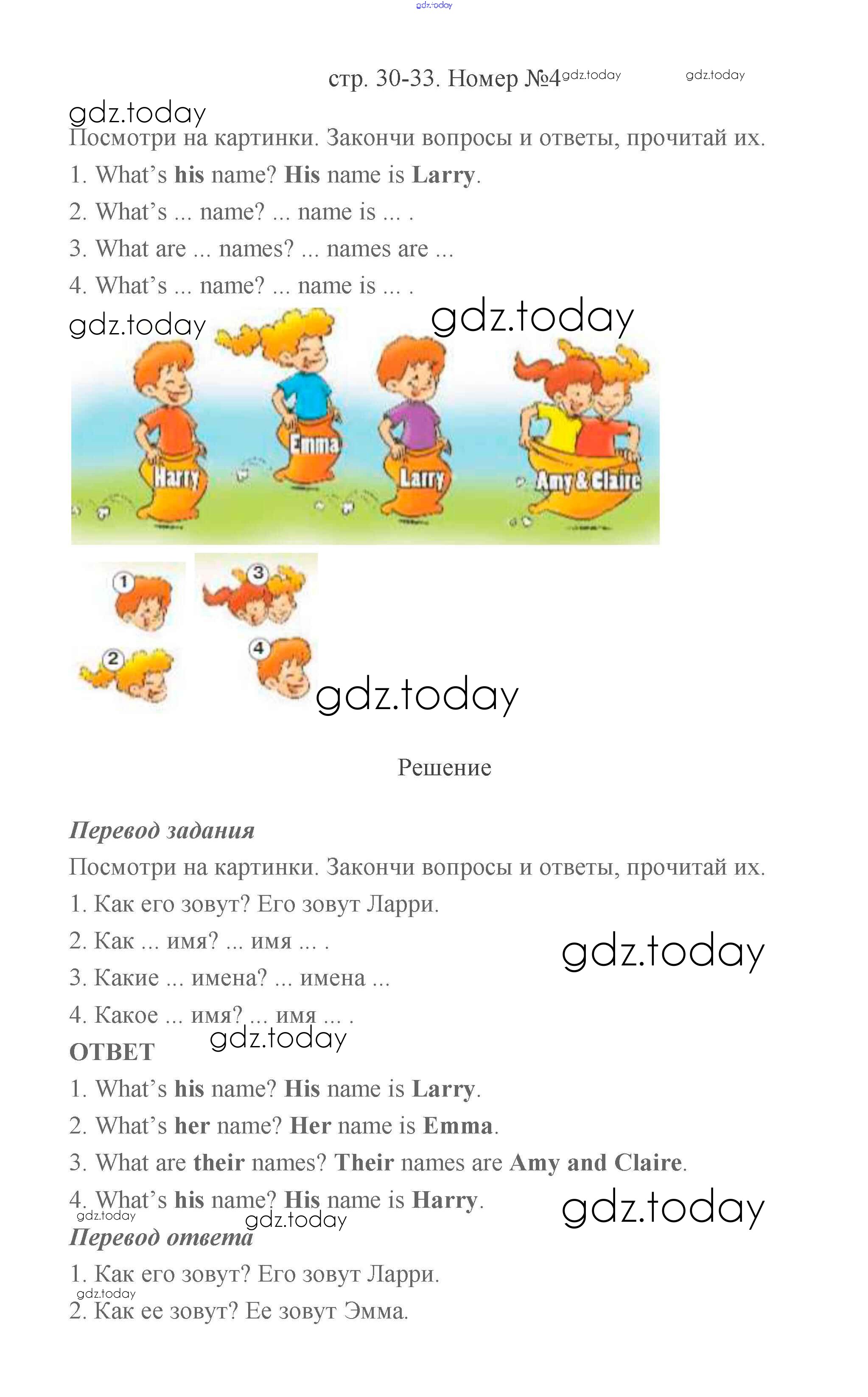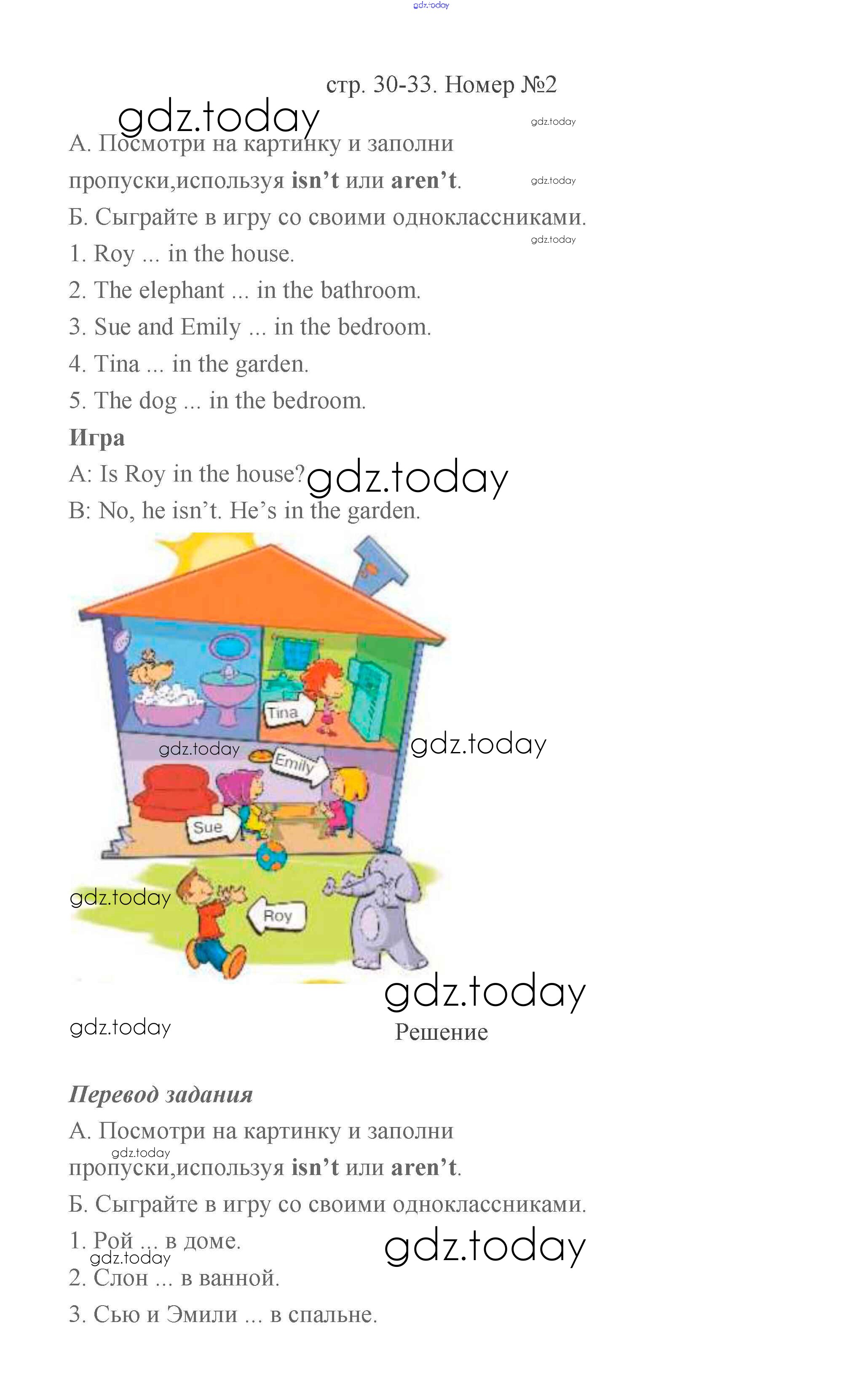 На страницах сайта gdz.today вы найдете учебный и вспомогательный материал, направленный на улучшения знаний школьной программы. ГДЗ - онлайн мир знаний Решение к части 1 (Страницы) 30-33 Учебнику по Английскому языку для 2 класса Баранова, Эванс Углубленный уровень Просвещение Starlight 2016