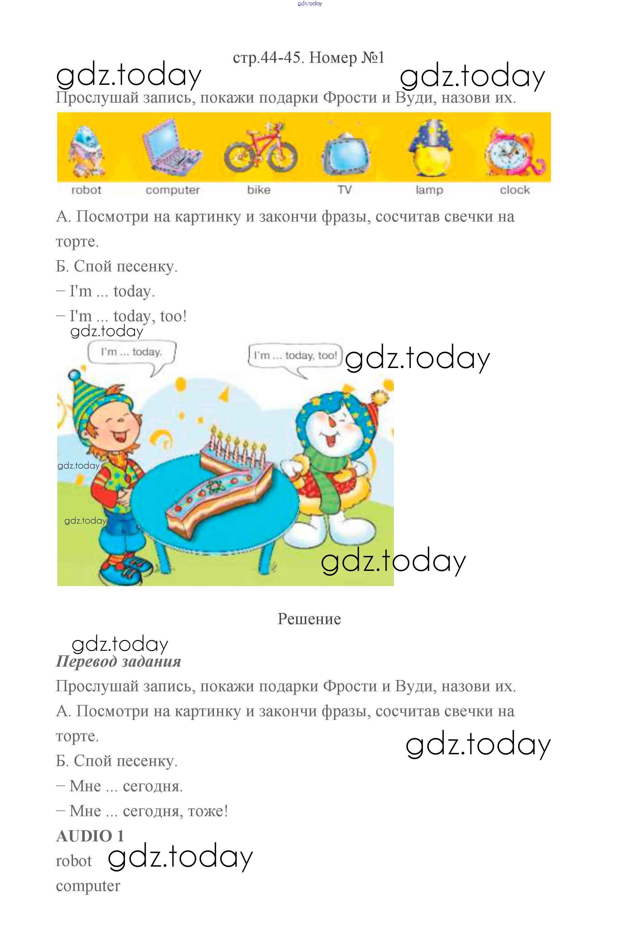На страницах сайта gdz.today вы найдете учебный и вспомогательный материал, направленный на улучшения знаний школьной программы. ГДЗ - онлайн мир знаний Решение к части 1 (Страницы) 44-45 Учебнику по Английскому языку для 2 класса Баранова, Эванс Углубленный уровень Просвещение Starlight 2016