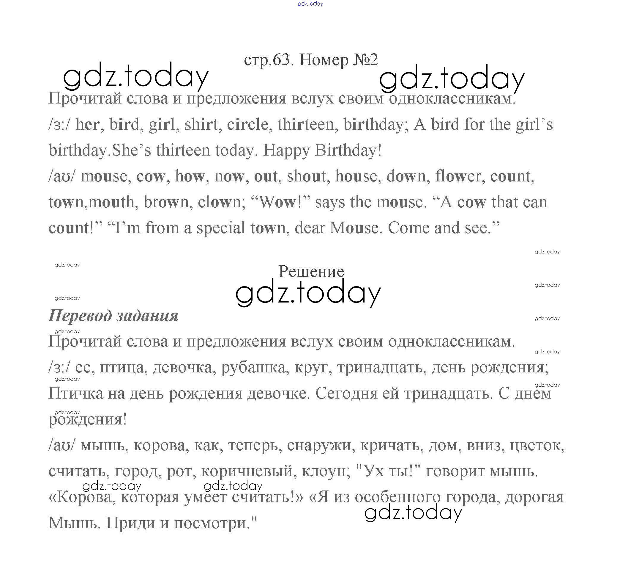 На страницах сайта gdz.today вы найдете учебный и вспомогательный материал, направленный на улучшения знаний школьной программы. ГДЗ - онлайн мир знаний Решение к части 1 (Страницы) 63 Учебнику по Английскому языку для 2 класса Баранова, Эванс Углубленный уровень Просвещение Starlight 2016