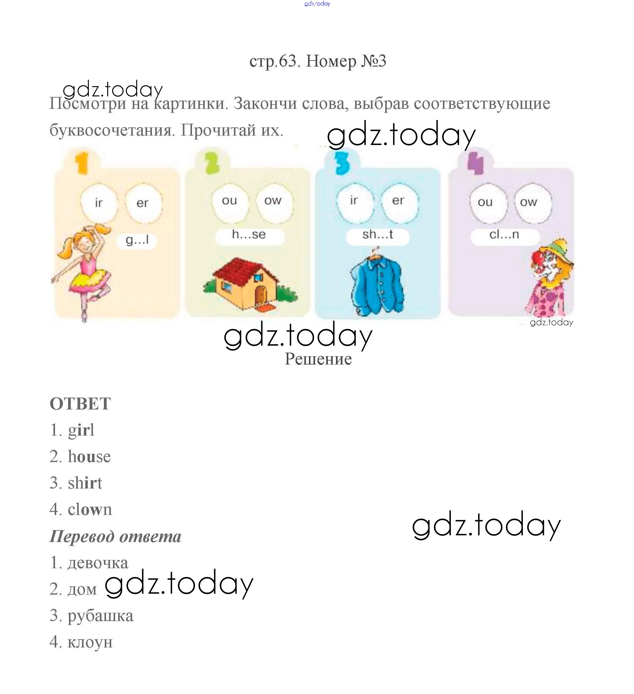 Ответы к Решение к части 1 (Страницы) 63 Учебнику по Английскому языку для 2 класса Баранова, Эванс Углубленный уровень Просвещение Starlight 2016