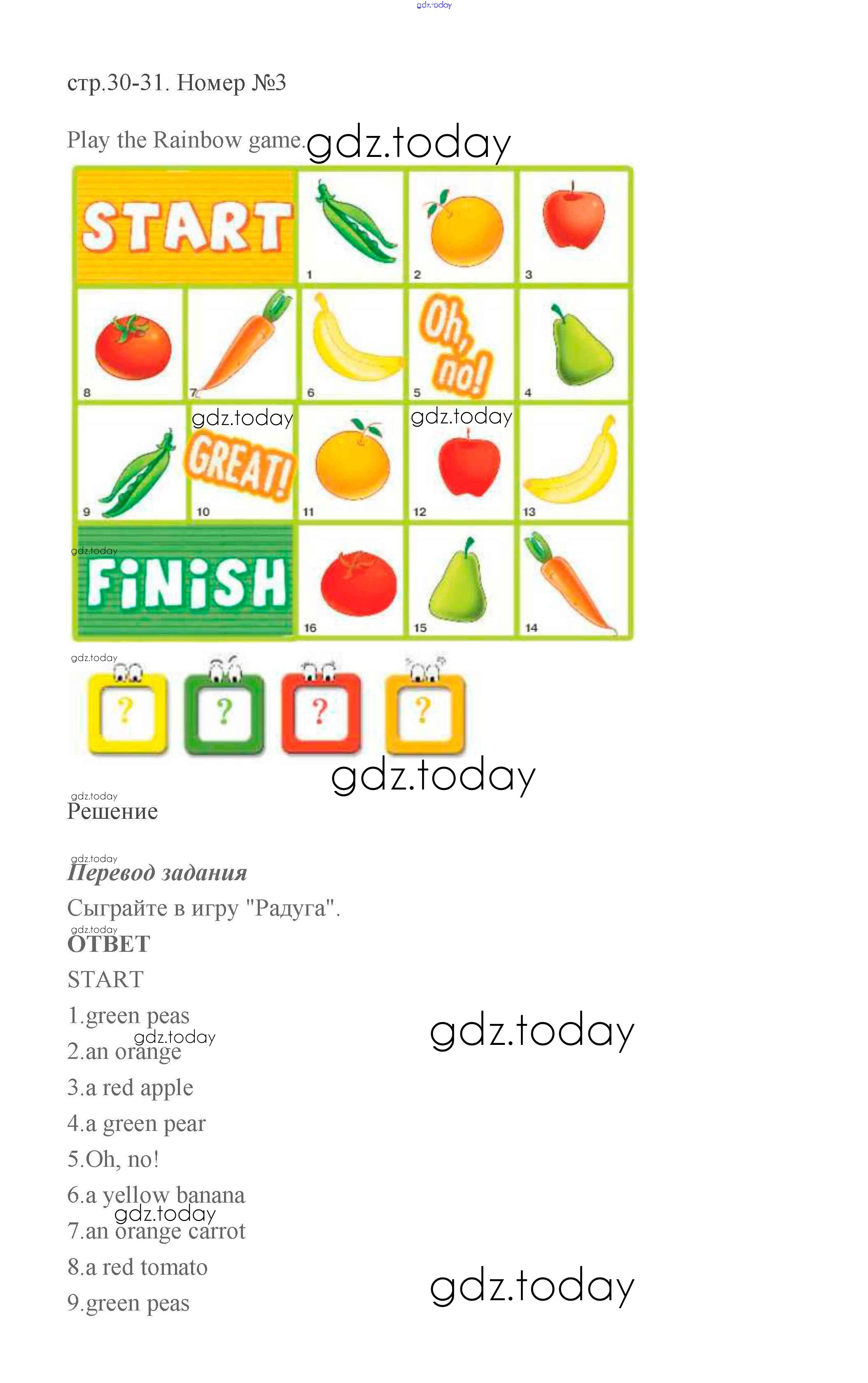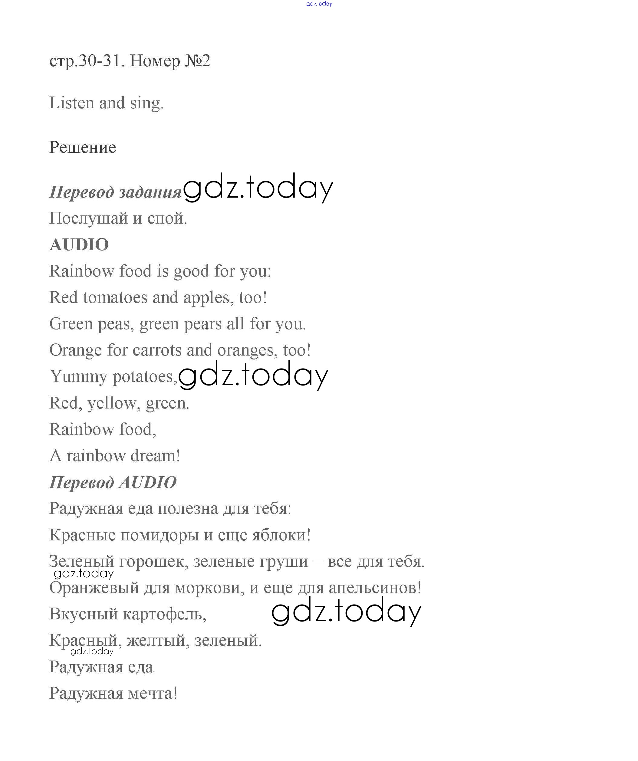 На страницах сайта gdz.today вы найдете учебный и вспомогательный материал, направленный на улучшения знаний школьной программы. ГДЗ - онлайн мир знаний Решение к части 2 (Страницы) 30-31 Учебнику по Английскому языку для 2 класса Баранова, Эванс Углубленный уровень Просвещение Starlight 2016