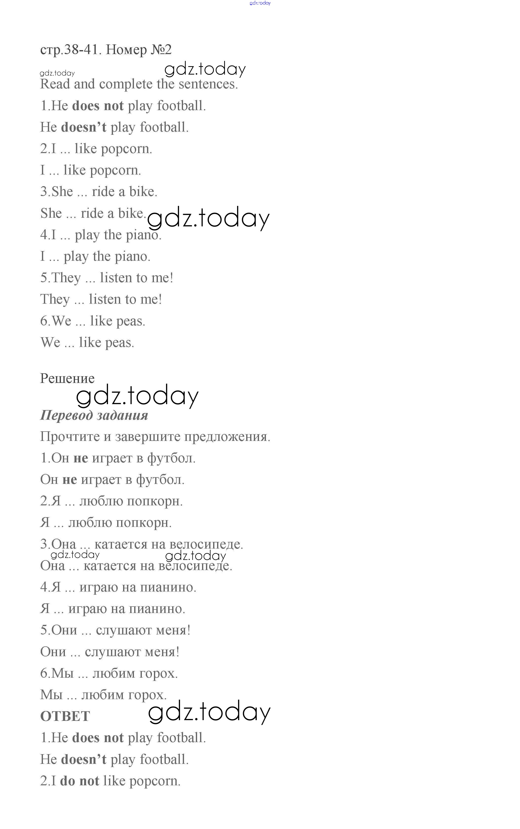 На страницах сайта gdz.today вы найдете учебный и вспомогательный материал, направленный на улучшения знаний школьной программы. ГДЗ - онлайн мир знаний Решение к части 2 (Страницы) 38-41 Учебнику по Английскому языку для 2 класса Баранова, Эванс Углубленный уровень Просвещение Starlight 2016