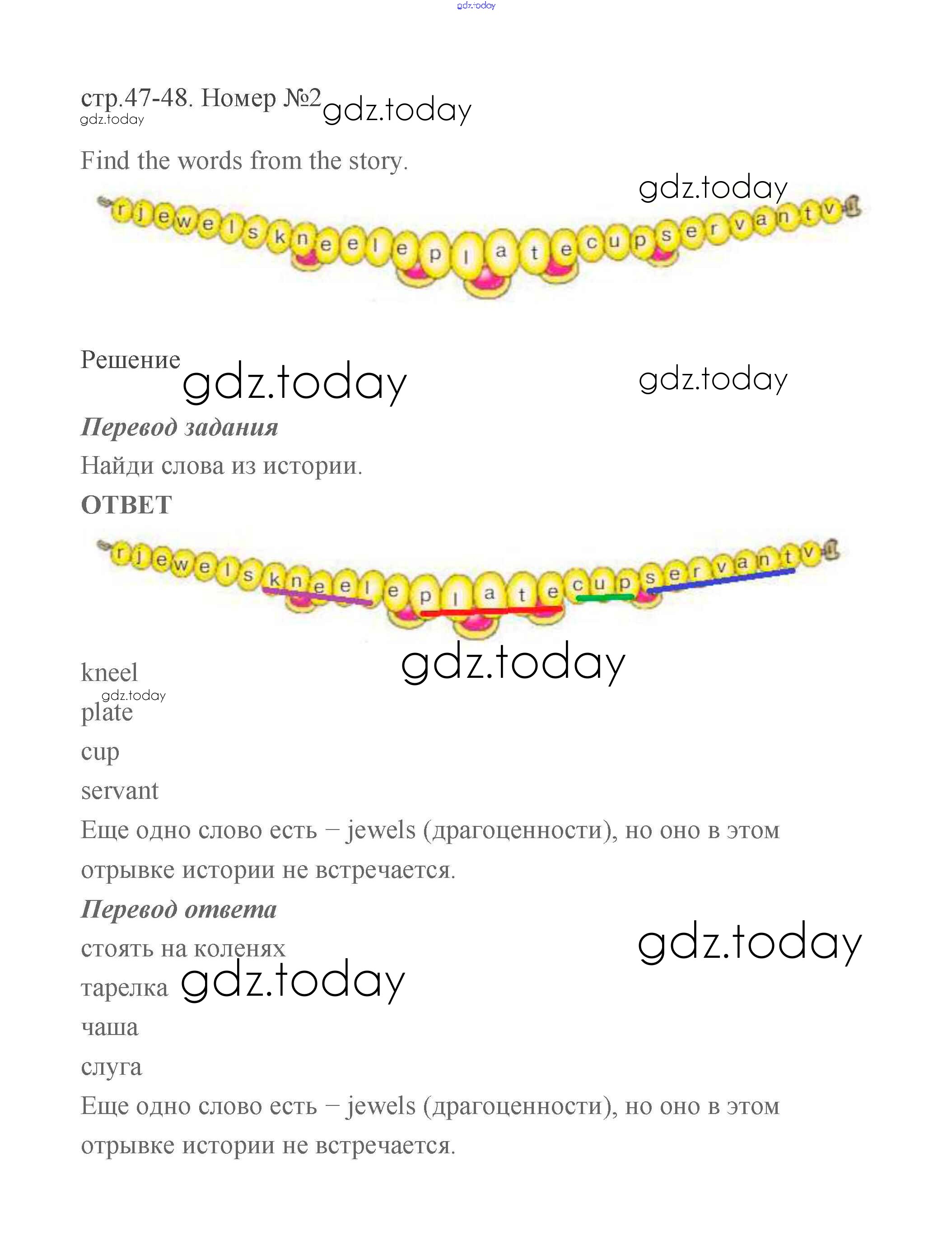 На страницах сайта gdz.today вы найдете учебный и вспомогательный материал, направленный на улучшения знаний школьной программы. ГДЗ - онлайн мир знаний Решение к части 2 (Страницы) 47-48 Учебнику по Английскому языку для 2 класса Баранова, Эванс Углубленный уровень Просвещение Starlight 2016