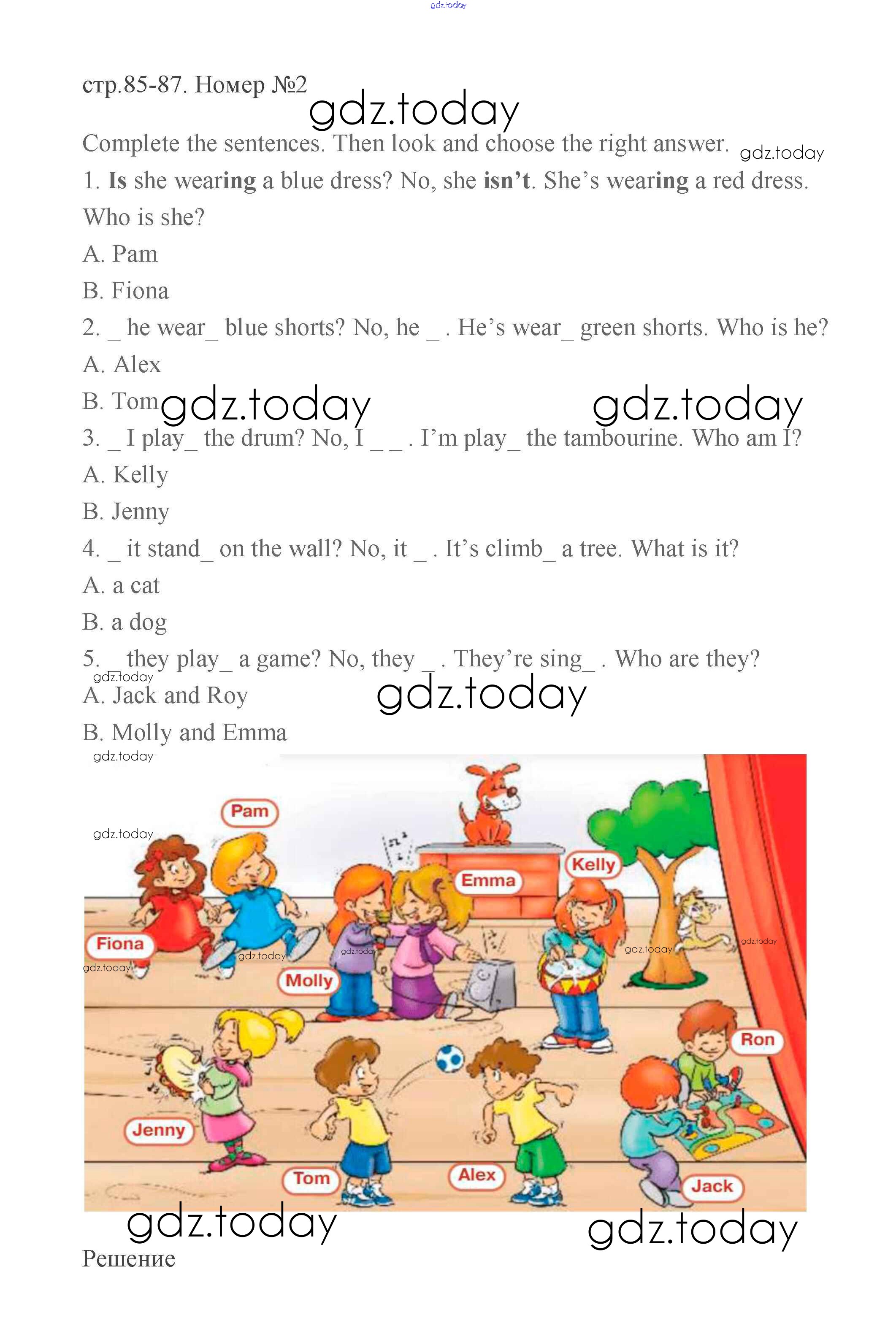 Ответы к Решение к части 2 (Страницы) 85-87 Учебнику по Английскому языку для 2 класса Баранова, Эванс Углубленный уровень Просвещение Starlight 2016