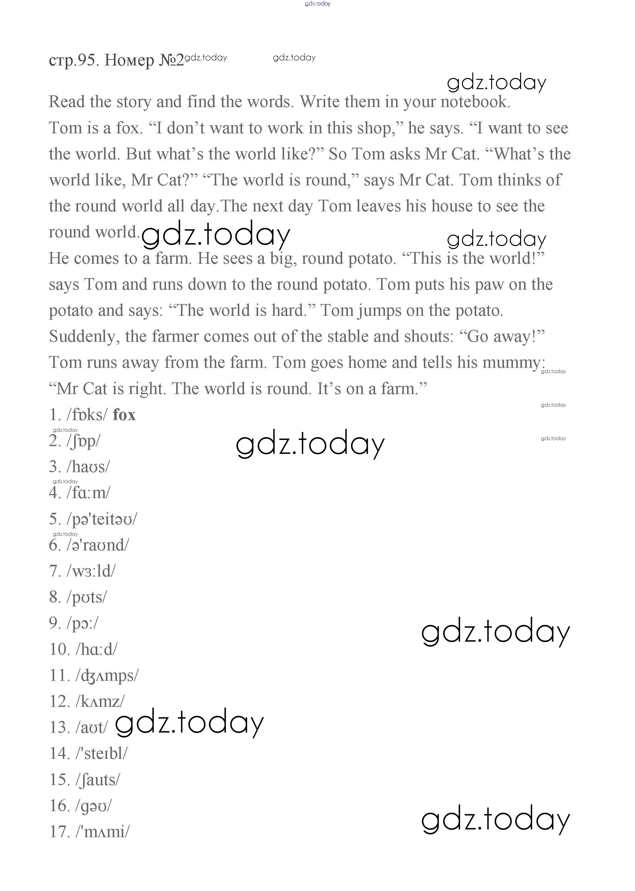 На страницах сайта gdz.today вы найдете учебный и вспомогательный материал, направленный на улучшения знаний школьной программы. ГДЗ - онлайн мир знаний Решение к части 2 (Страницы) 95 Учебнику по Английскому языку для 2 класса Баранова, Эванс Углубленный уровень Просвещение Starlight 2016
