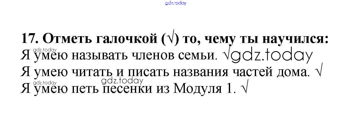 На страницах сайта gdz.today вы найдете учебный и вспомогательный материал, направленный на улучшения знаний школьной программы. ГДЗ - онлайн мир знаний Решение к Module 1. My Family 17 Рабочей тетради по Английскому языку для 2 класса Баранова, Эванс Углубленный уровень Просвещение Starlight 2016
