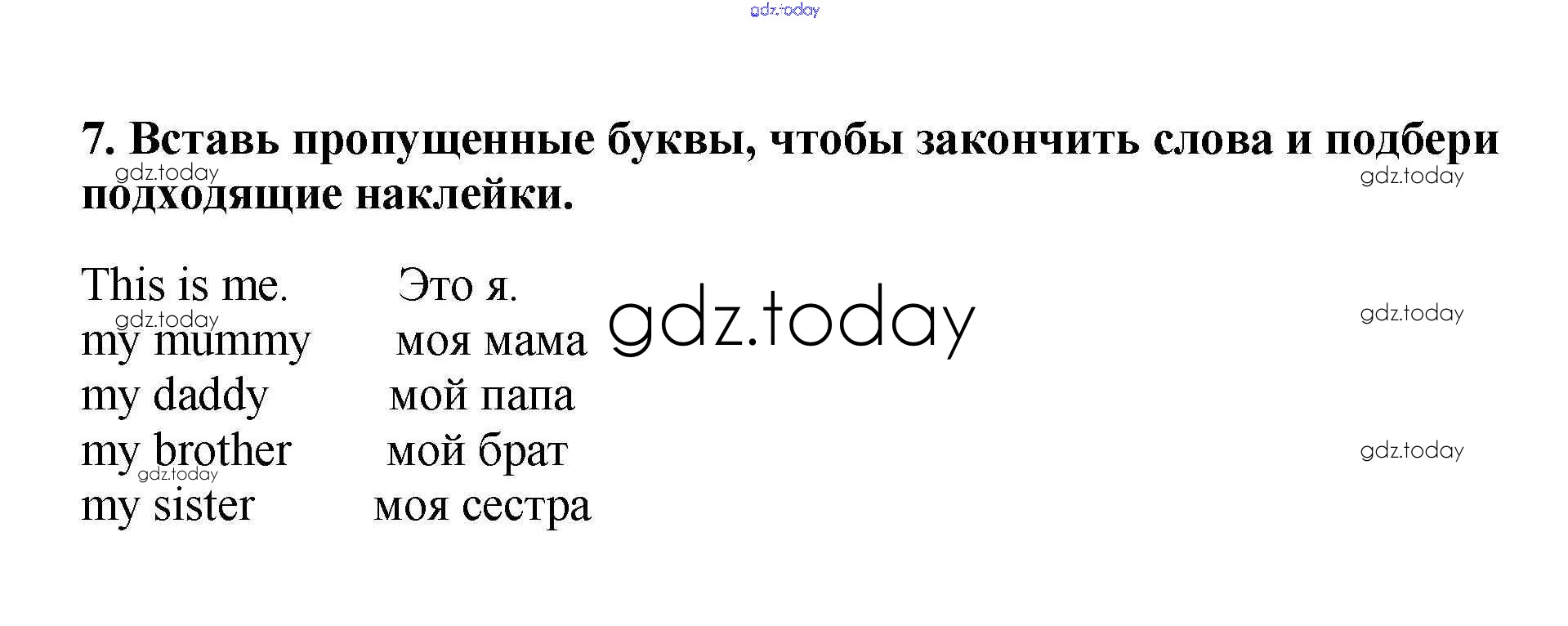 На страницах сайта gdz.today вы найдете учебный и вспомогательный материал, направленный на улучшения знаний школьной программы. ГДЗ - онлайн мир знаний Решение к Module 1. My Family 7 Рабочей тетради по Английскому языку для 2 класса Баранова, Эванс Углубленный уровень Просвещение Starlight 2016