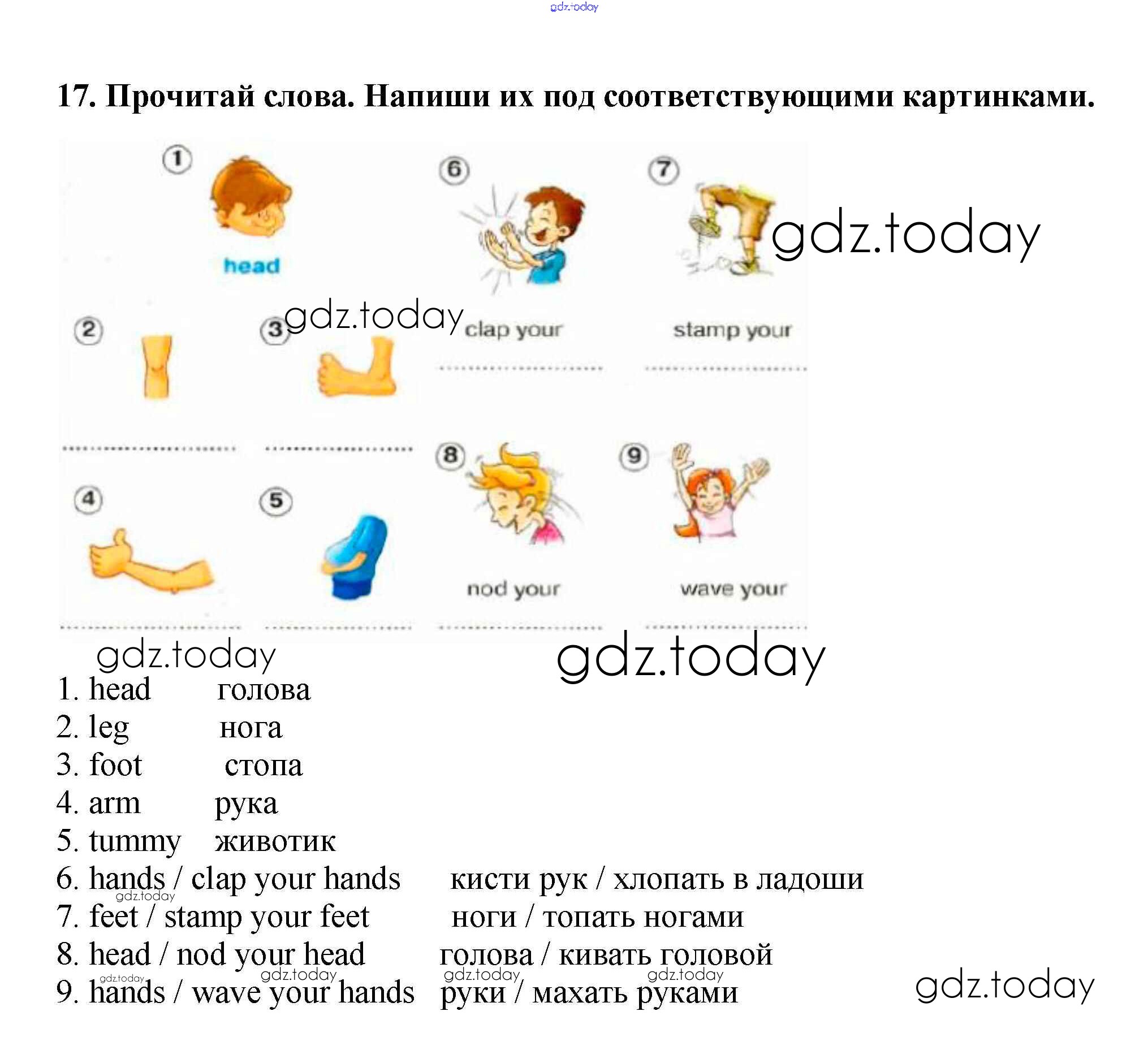 На страницах сайта gdz.today вы найдете учебный и вспомогательный материал, направленный на улучшения знаний школьной программы. ГДЗ - онлайн мир знаний Решение к Module 3. My Body 17 Рабочей тетради по Английскому языку для 2 класса Баранова, Эванс Углубленный уровень Просвещение Starlight 2016