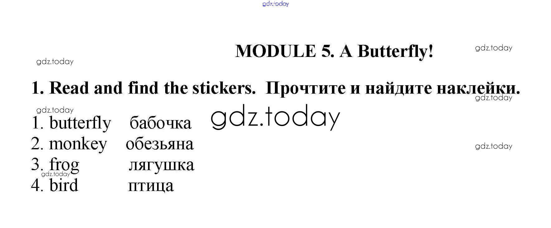 На страницах сайта gdz.today вы найдете учебный и вспомогательный материал, направленный на улучшения знаний школьной программы. ГДЗ - онлайн мир знаний Решение к Module 5. A Butterfly! 1 Рабочей тетради по Английскому языку для 2 класса Баранова, Эванс Углубленный уровень Просвещение Starlight 2016