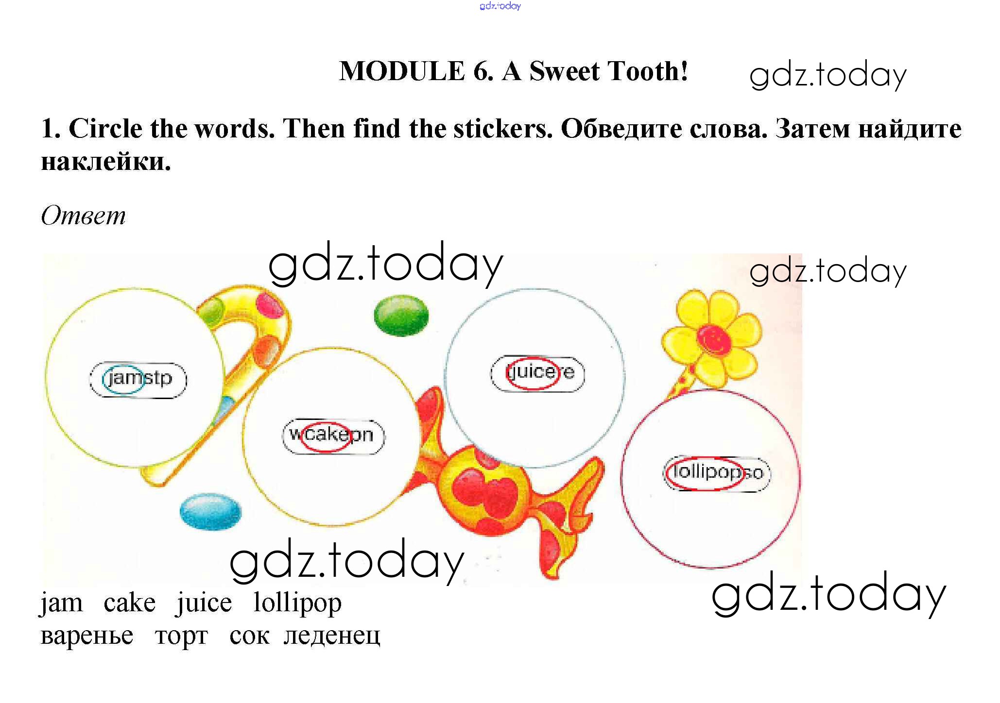 На страницах сайта gdz.today вы найдете учебный и вспомогательный материал, направленный на улучшения знаний школьной программы. ГДЗ - онлайн мир знаний Решение к Module 6. A Sweet Tooth! 1 Рабочей тетради по Английскому языку для 2 класса Баранова, Эванс Углубленный уровень Просвещение Starlight 2016