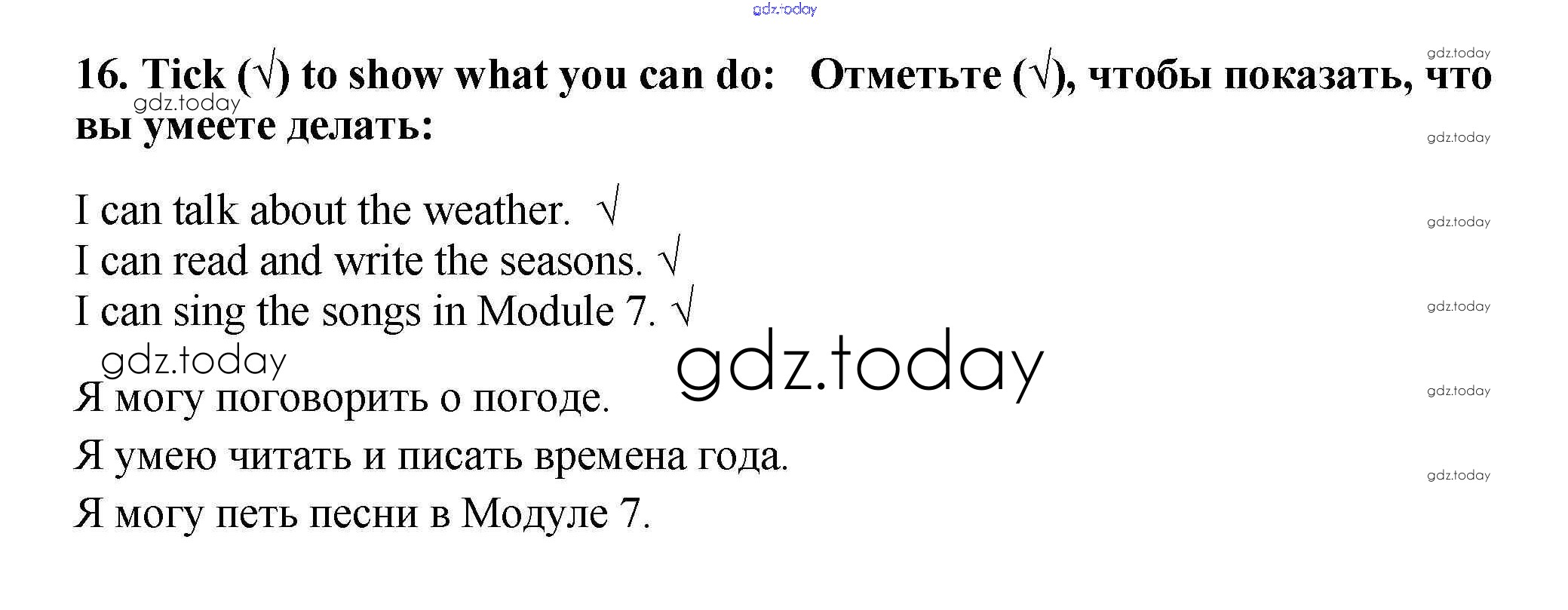 На страницах сайта gdz.today вы найдете учебный и вспомогательный материал, направленный на улучшения знаний школьной программы. ГДЗ - онлайн мир знаний Решение к Module 7. The Weather 16 Рабочей тетради по Английскому языку для 2 класса Баранова, Эванс Углубленный уровень Просвещение Starlight 2016