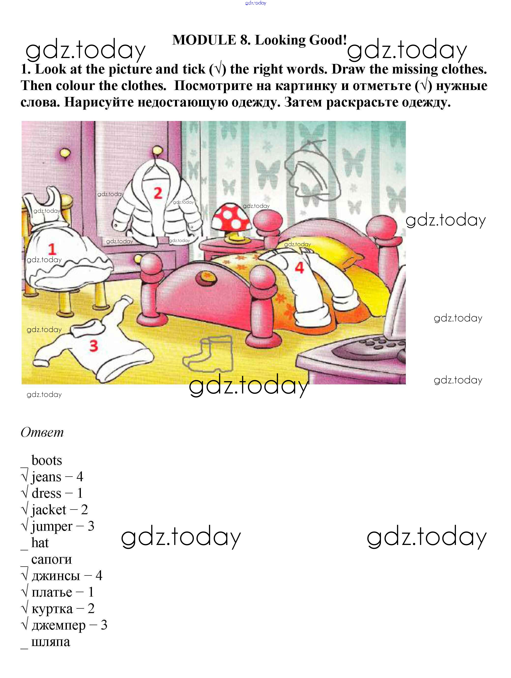 На страницах сайта gdz.today вы найдете учебный и вспомогательный материал, направленный на улучшения знаний школьной программы. ГДЗ - онлайн мир знаний Решение к Module 8. Looking Good! 1 Рабочей тетради по Английскому языку для 2 класса Баранова, Эванс Углубленный уровень Просвещение Starlight 2016