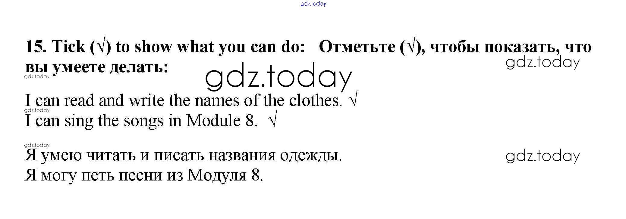 Ответы к Решение к Module 8. Looking Good! 15 Рабочей тетради по Английскому языку для 2 класса Баранова, Эванс Углубленный уровень Просвещение Starlight 2016