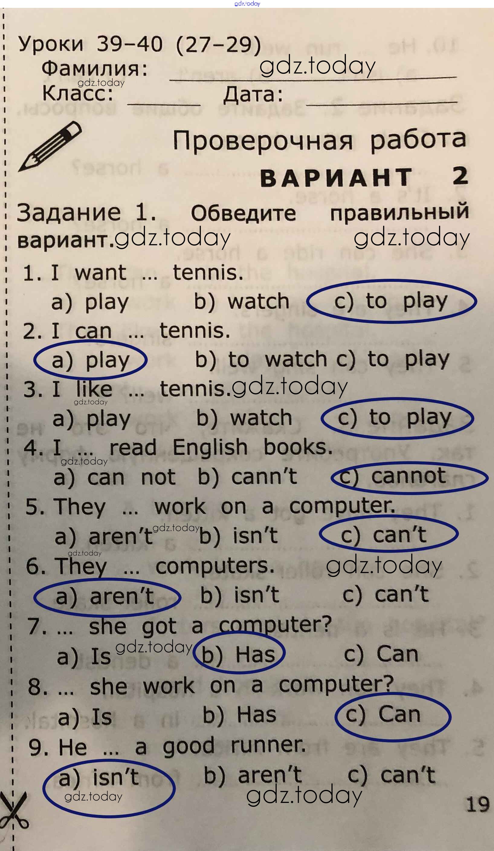 На страницах сайта gdz.today вы найдете учебный и вспомогательный материал, направленный на улучшения знаний школьной программы. ГДЗ - онлайн мир знаний Страницы (решение) 19 Проверочным работам по Английскому языку для 2 класса Барашкова Экзамен УМК 2018