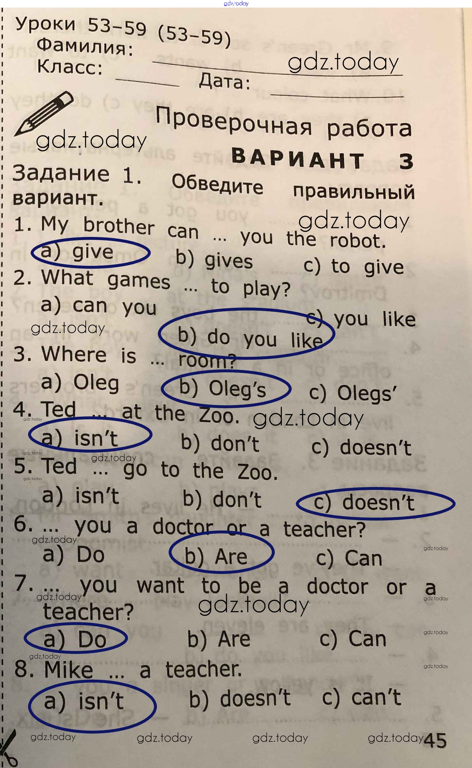 На страницах сайта gdz.today вы найдете учебный и вспомогательный материал, направленный на улучшения знаний школьной программы. ГДЗ - онлайн мир знаний Страницы (решение) 45 Проверочным работам по Английскому языку для 2 класса Барашкова Экзамен УМК 2018