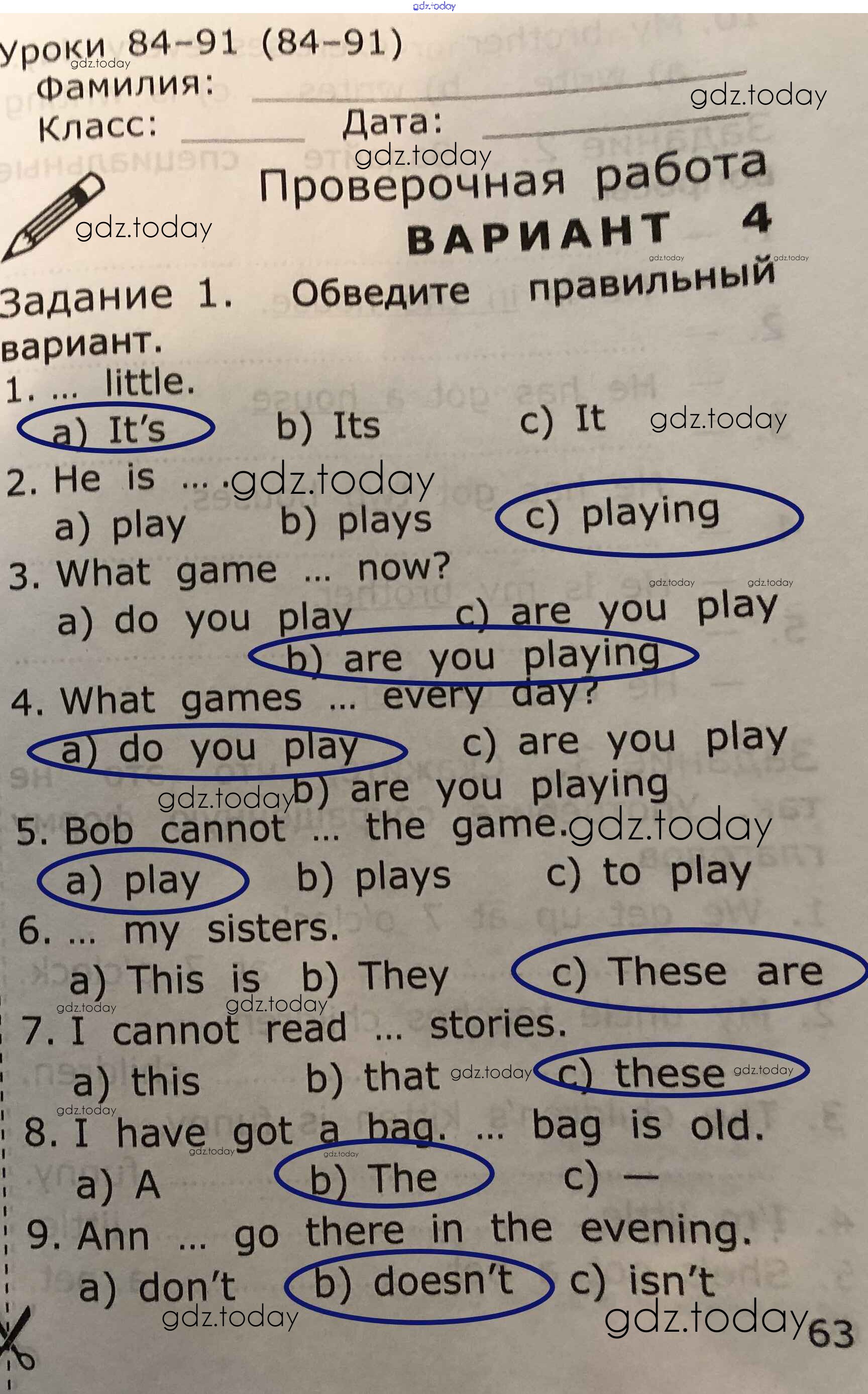 На страницах сайта gdz.today вы найдете учебный и вспомогательный материал, направленный на улучшения знаний школьной программы. ГДЗ - онлайн мир знаний Страницы (решение) 63 Проверочным работам по Английскому языку для 2 класса Барашкова Экзамен УМК 2018
