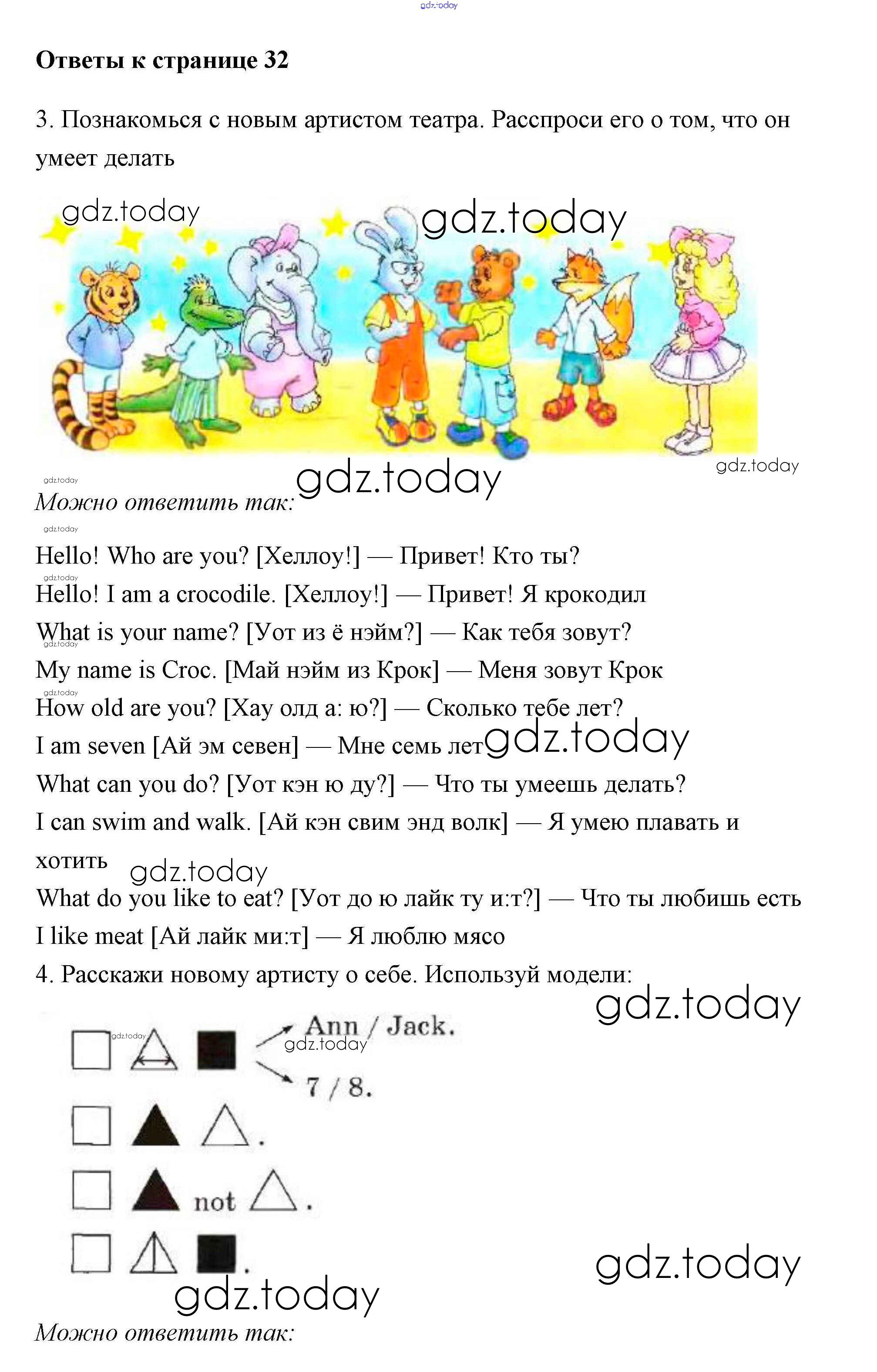 На страницах сайта gdz.today вы найдете учебный и вспомогательный материал, направленный на улучшения знаний школьной программы. ГДЗ - онлайн мир знаний Страницы (решение) 32 Учебнику по Английскому языку для 2 класса Биболетова, Денисенко Титул Enjoy English 2012