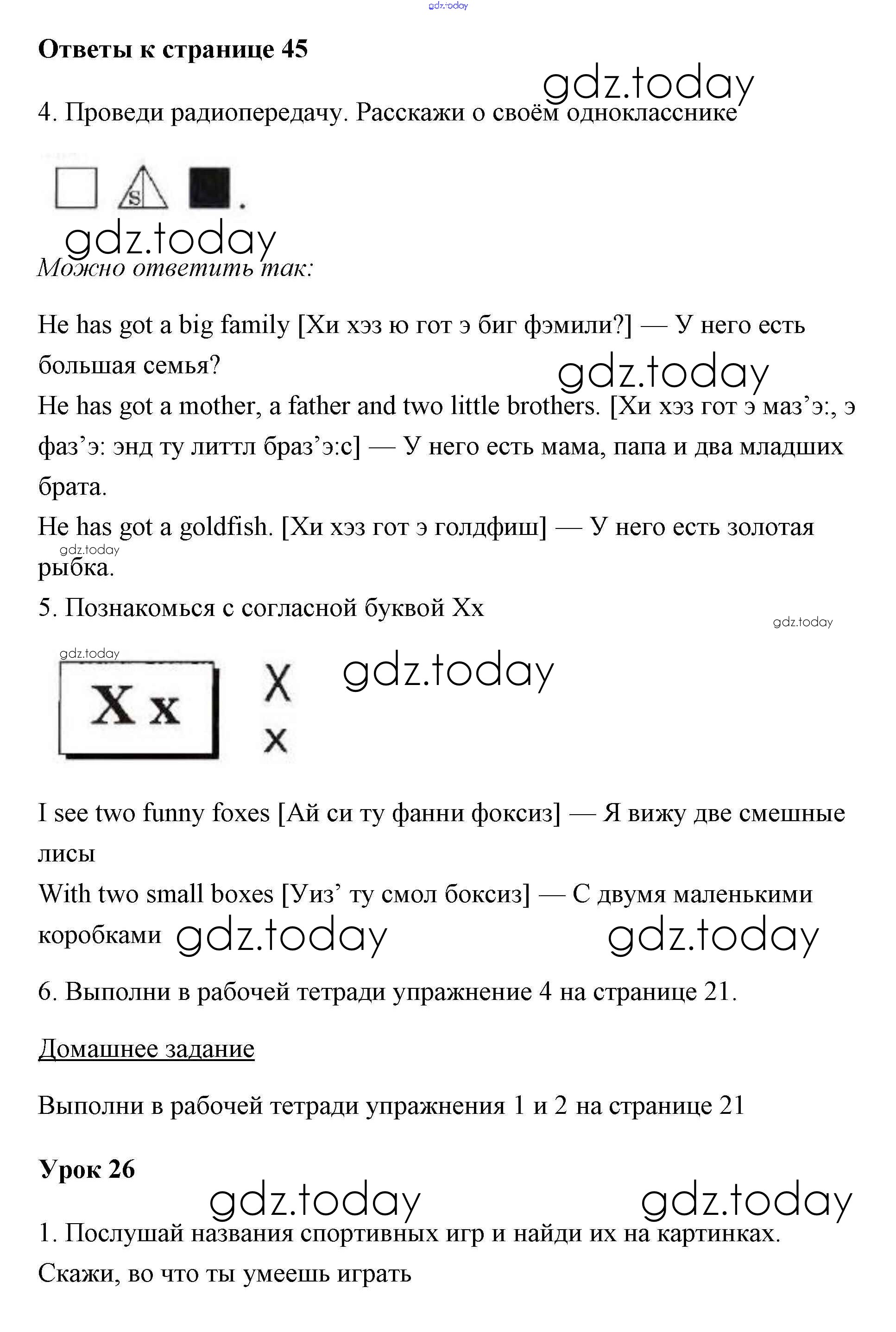 На страницах сайта gdz.today вы найдете учебный и вспомогательный материал, направленный на улучшения знаний школьной программы. ГДЗ - онлайн мир знаний Страницы (решение) 45 Учебнику по Английскому языку для 2 класса Биболетова, Денисенко Титул Enjoy English 2012