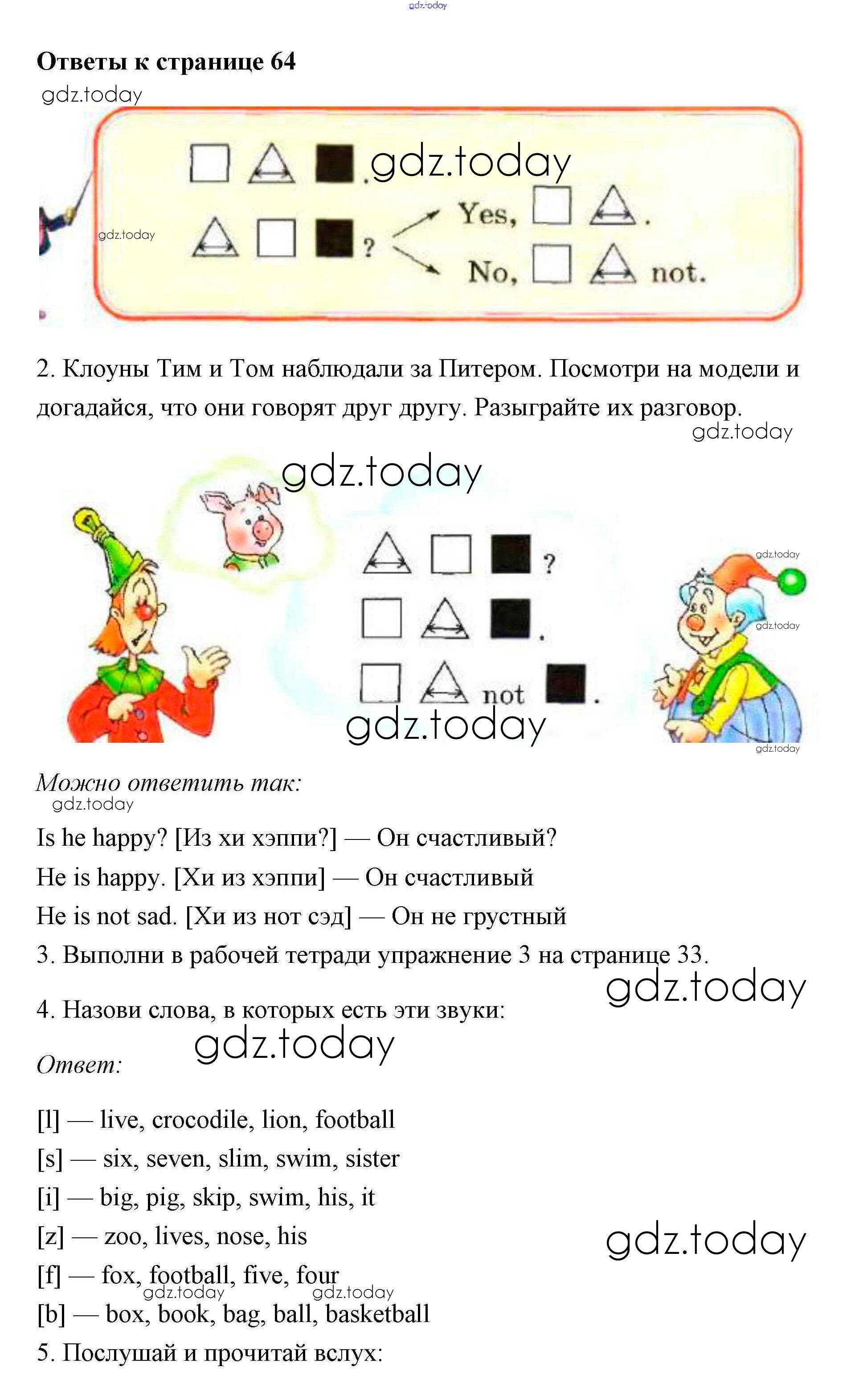 Ответы к Страницы (решение) 64 Учебнику по Английскому языку для 2 класса Биболетова, Денисенко Титул Enjoy English 2012