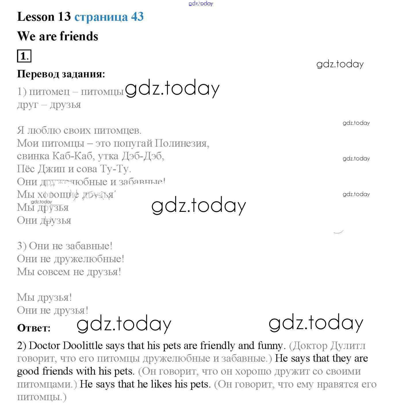 Ответы к Решение. Lesson 1-27 13 Учебнику по Английскому языку для 2 класса Кузовлев, Перегудова Просвещение Перспектива 2017