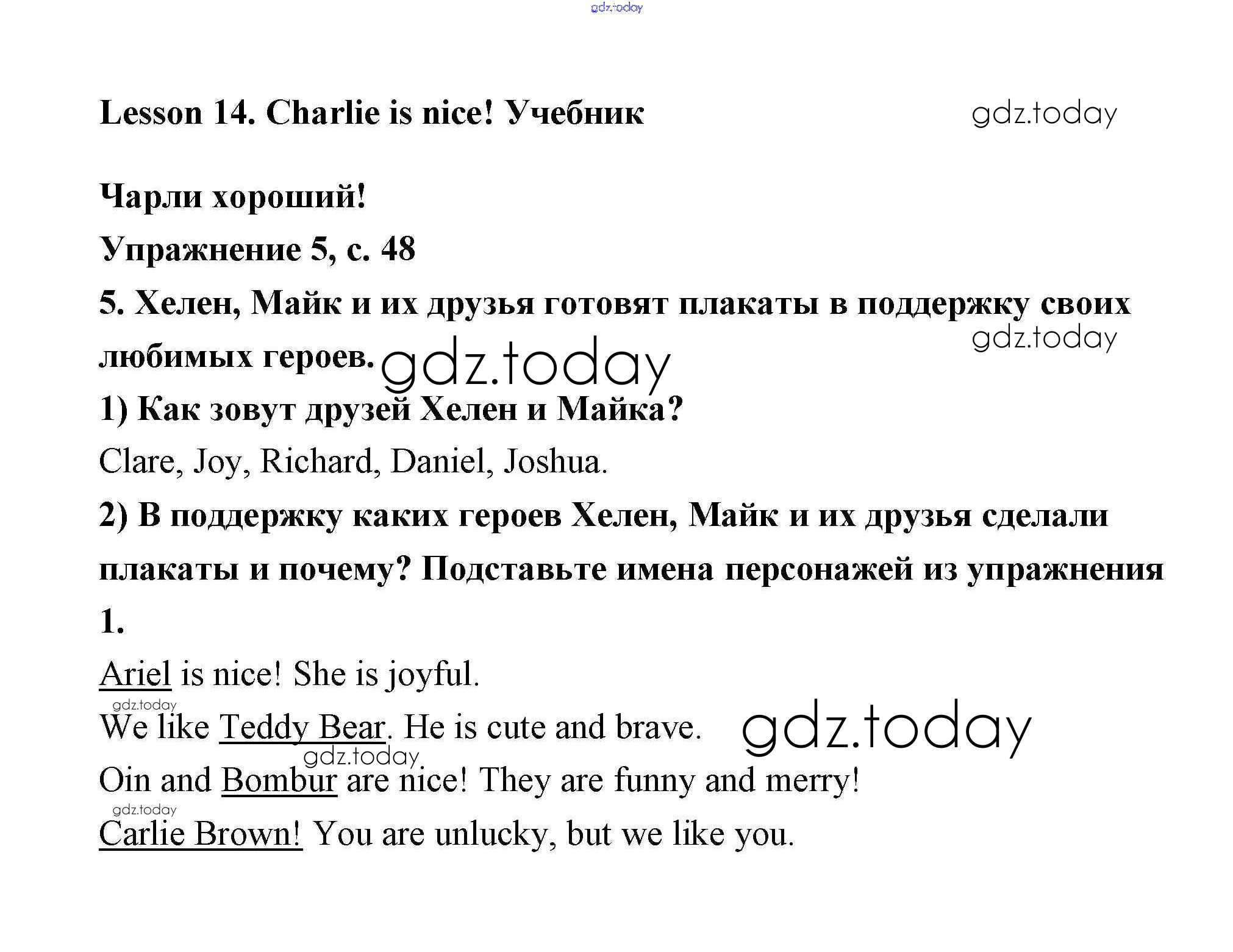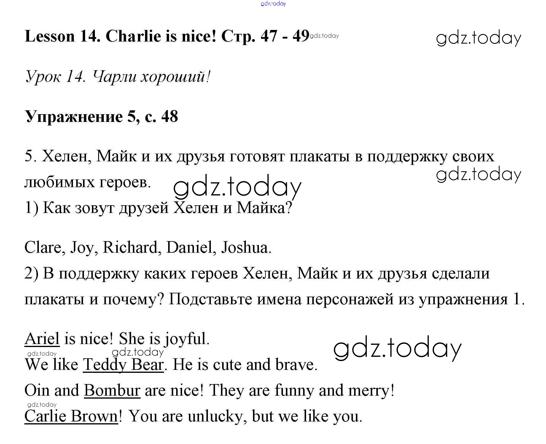 Ответы к Решение. Lesson 1-27 14 Учебнику по Английскому языку для 2 класса Кузовлев, Перегудова Просвещение Перспектива 2017
