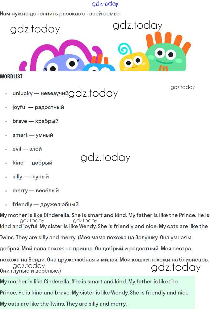 На страницах сайта gdz.today вы найдете учебный и вспомогательный материал, направленный на улучшения знаний школьной программы. ГДЗ - онлайн мир знаний Решение. Lesson 29-55 34 Учебнику по Английскому языку для 2 класса Кузовлев, Перегудова Просвещение Перспектива 2017