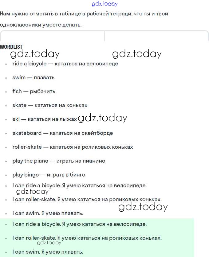 На страницах сайта gdz.today вы найдете учебный и вспомогательный материал, направленный на улучшения знаний школьной программы. ГДЗ - онлайн мир знаний Решение. Lesson 29-55 39 Учебнику по Английскому языку для 2 класса Кузовлев, Перегудова Просвещение Перспектива 2017