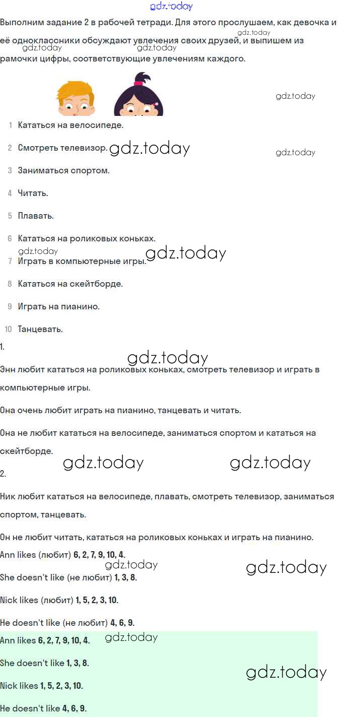 На страницах сайта gdz.today вы найдете учебный и вспомогательный материал, направленный на улучшения знаний школьной программы. ГДЗ - онлайн мир знаний Решение. Lesson 29-55 49 Учебнику по Английскому языку для 2 класса Кузовлев, Перегудова Просвещение Перспектива 2017