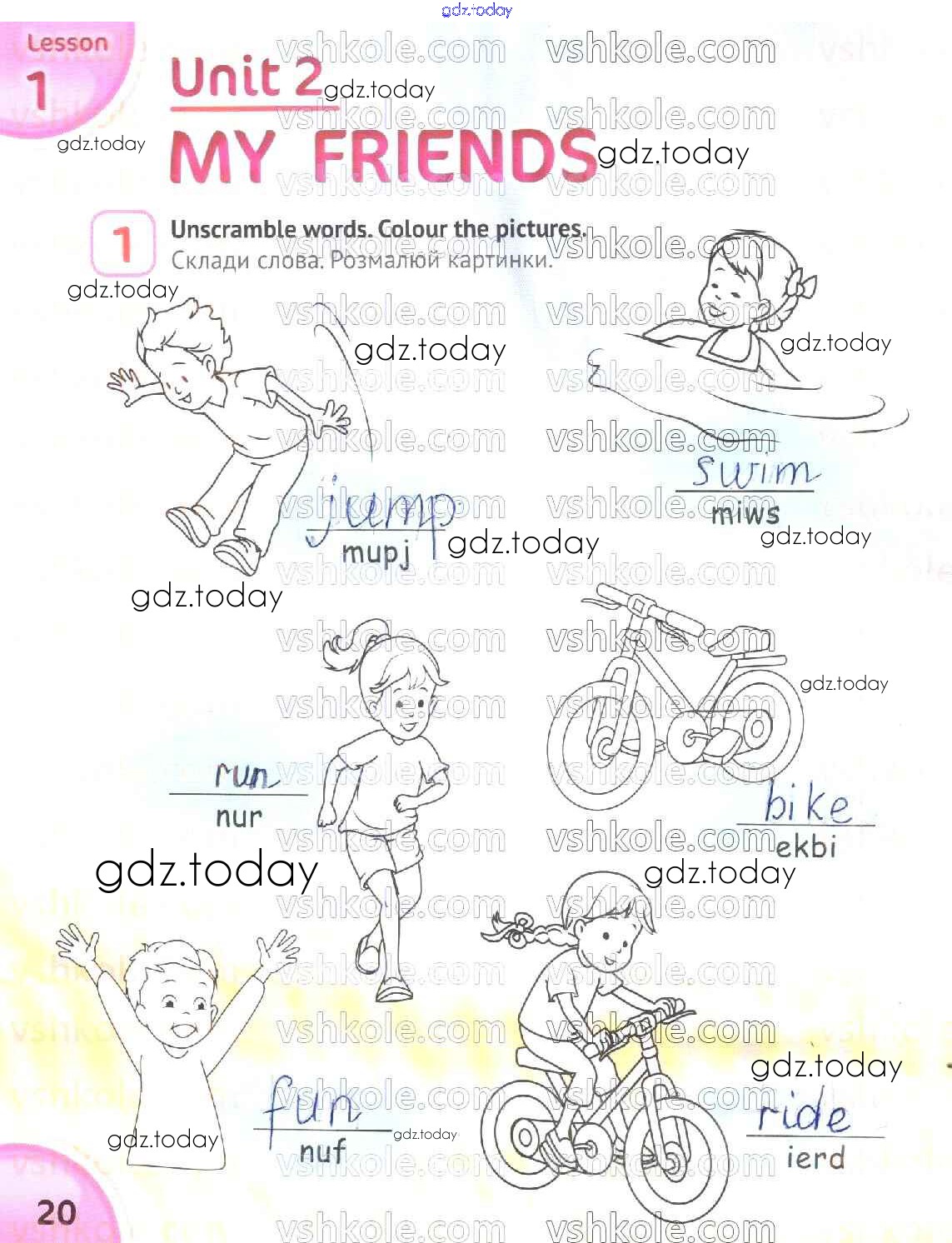 На страницах сайта gdz.today вы найдете учебный и вспомогательный материал, направленный на улучшения знаний школьной программы. ГДЗ - онлайн мир знаний Рішення до Сторінки 20 Рабочей тетради по Английскому языку для 2 класса Карпюк Видавництво Астон 2019