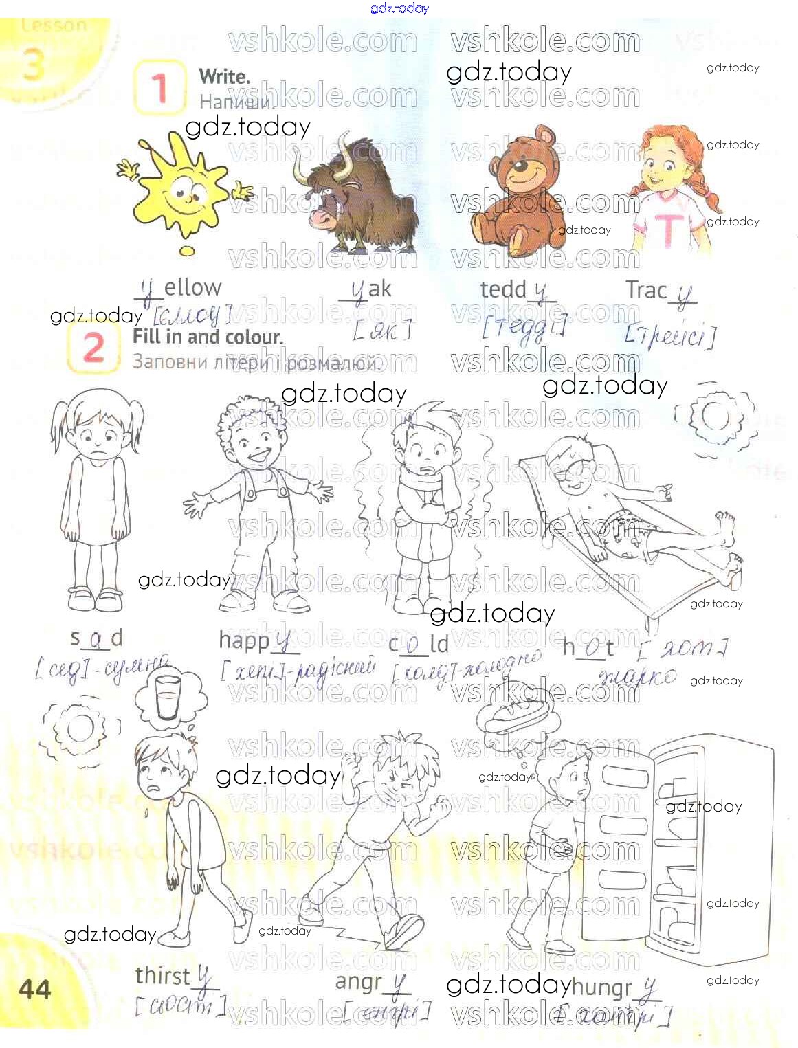 На страницах сайта gdz.today вы найдете учебный и вспомогательный материал, направленный на улучшения знаний школьной программы. ГДЗ - онлайн мир знаний Рішення до Сторінки 44 Рабочей тетради по Английскому языку для 2 класса Карпюк Видавництво Астон 2019