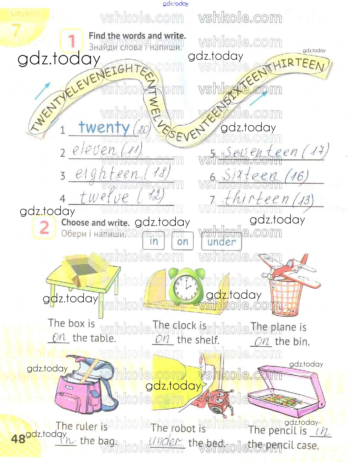 На страницах сайта gdz.today вы найдете учебный и вспомогательный материал, направленный на улучшения знаний школьной программы. ГДЗ - онлайн мир знаний Рішення до Сторінки 48 Рабочей тетради по Английскому языку для 2 класса Карпюк Видавництво Астон 2019