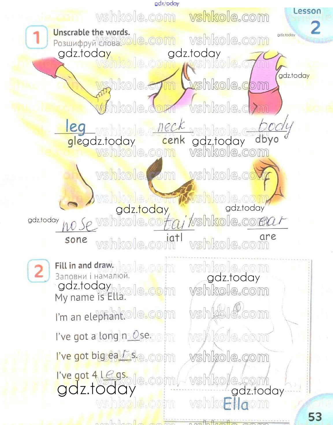 На страницах сайта gdz.today вы найдете учебный и вспомогательный материал, направленный на улучшения знаний школьной программы. ГДЗ - онлайн мир знаний Рішення до Сторінки 53 Рабочей тетради по Английскому языку для 2 класса Карпюк Видавництво Астон 2019