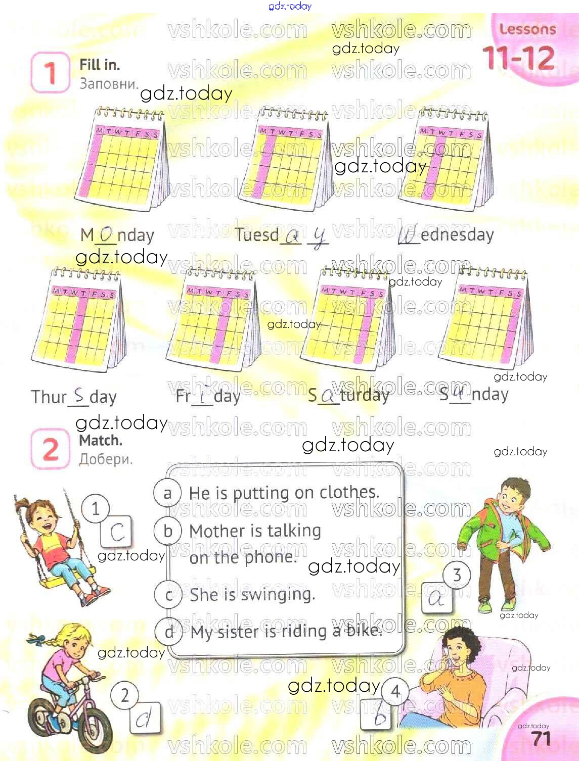 Ответы к Рішення до Сторінки 71 Рабочей тетради по Английскому языку для 2 класса Карпюк Видавництво Астон 2019