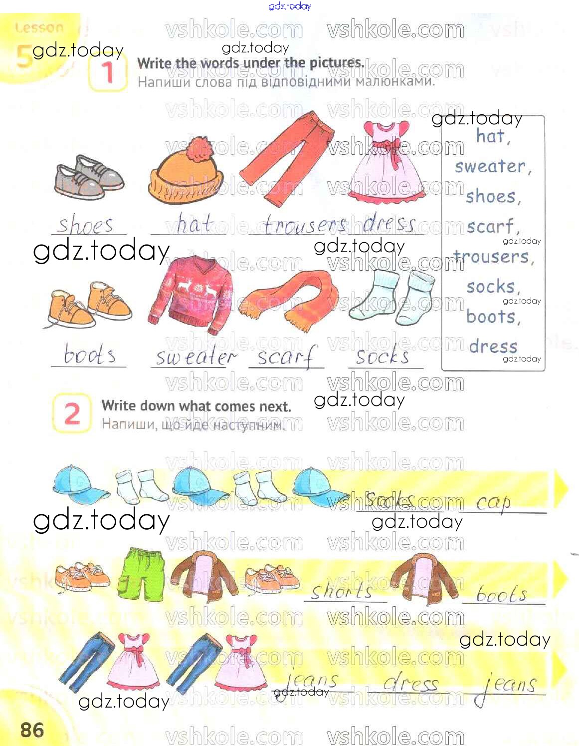 На страницах сайта gdz.today вы найдете учебный и вспомогательный материал, направленный на улучшения знаний школьной программы. ГДЗ - онлайн мир знаний Рішення до Сторінки 86 Рабочей тетради по Английскому языку для 2 класса Карпюк Видавництво Астон 2019