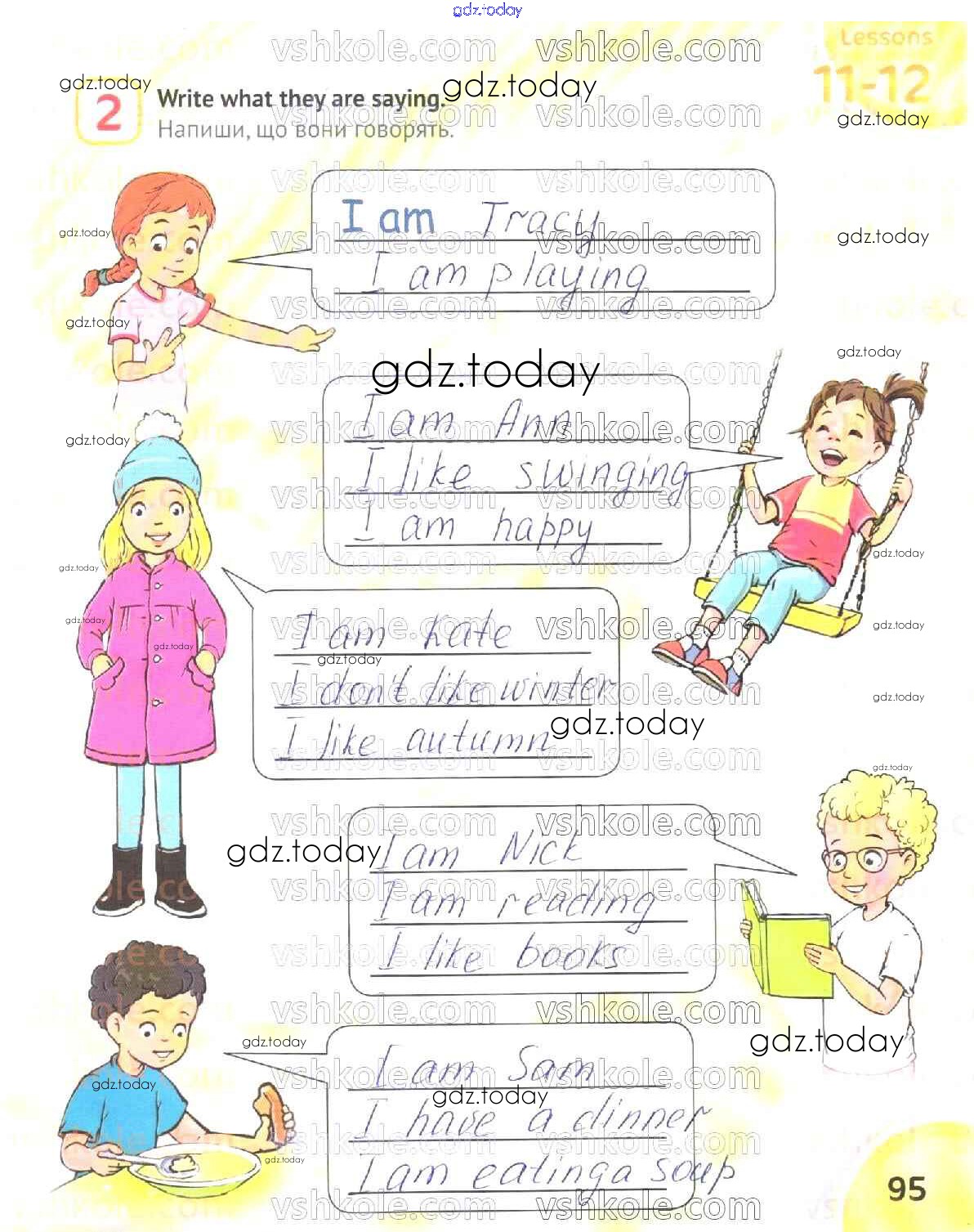 На страницах сайта gdz.today вы найдете учебный и вспомогательный материал, направленный на улучшения знаний школьной программы. ГДЗ - онлайн мир знаний Рішення до Сторінки 95 Рабочей тетради по Английскому языку для 2 класса Карпюк Видавництво Астон 2019