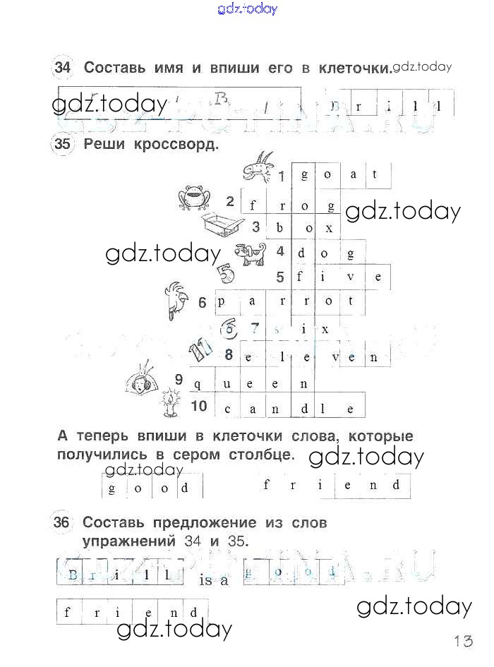 Ответы к Решение. Страницы 13 Рабочей тетради по Английскому языку для 2 класса Комарова, Ларионова Русское слово Brilliant 2014