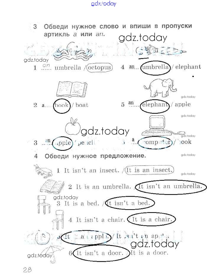 Ответы к Решение. Страницы 28 Рабочей тетради по Английскому языку для 2 класса Комарова, Ларионова Русское слово Brilliant 2014
