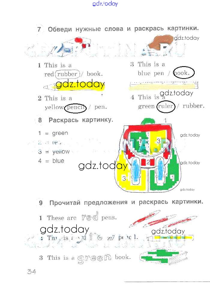 Ответы к Решение. Страницы 34 Рабочей тетради по Английскому языку для 2 класса Комарова, Ларионова Русское слово Brilliant 2014
