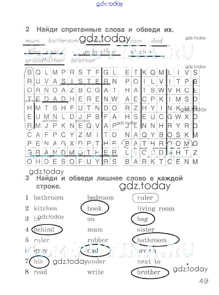 На страницах сайта gdz.today вы найдете учебный и вспомогательный материал, направленный на улучшения знаний школьной программы. ГДЗ - онлайн мир знаний Решение. Страницы 49 Рабочей тетради по Английскому языку для 2 класса Комарова, Ларионова Русское слово Brilliant 2014