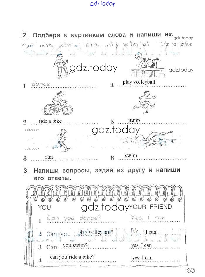 На страницах сайта gdz.today вы найдете учебный и вспомогательный материал, направленный на улучшения знаний школьной программы. ГДЗ - онлайн мир знаний Решение. Страницы 63 Рабочей тетради по Английскому языку для 2 класса Комарова, Ларионова Русское слово Brilliant 2014