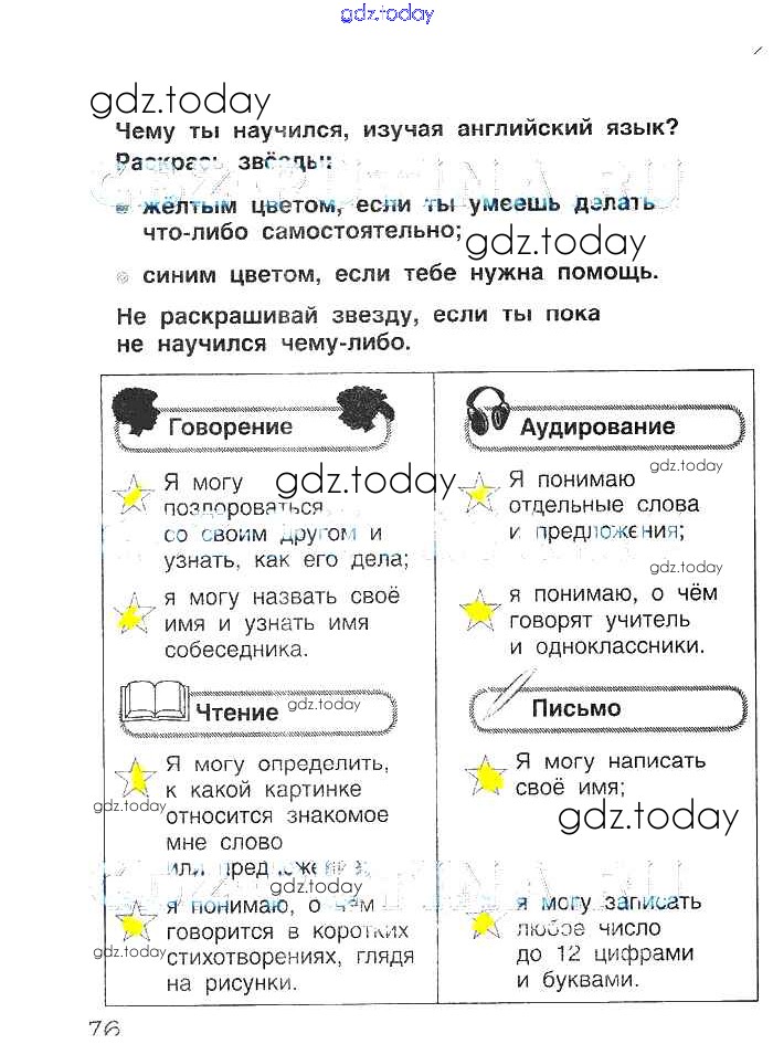 На страницах сайта gdz.today вы найдете учебный и вспомогательный материал, направленный на улучшения знаний школьной программы. ГДЗ - онлайн мир знаний Решение. Страницы 76 Рабочей тетради по Английскому языку для 2 класса Комарова, Ларионова Русское слово Brilliant 2014