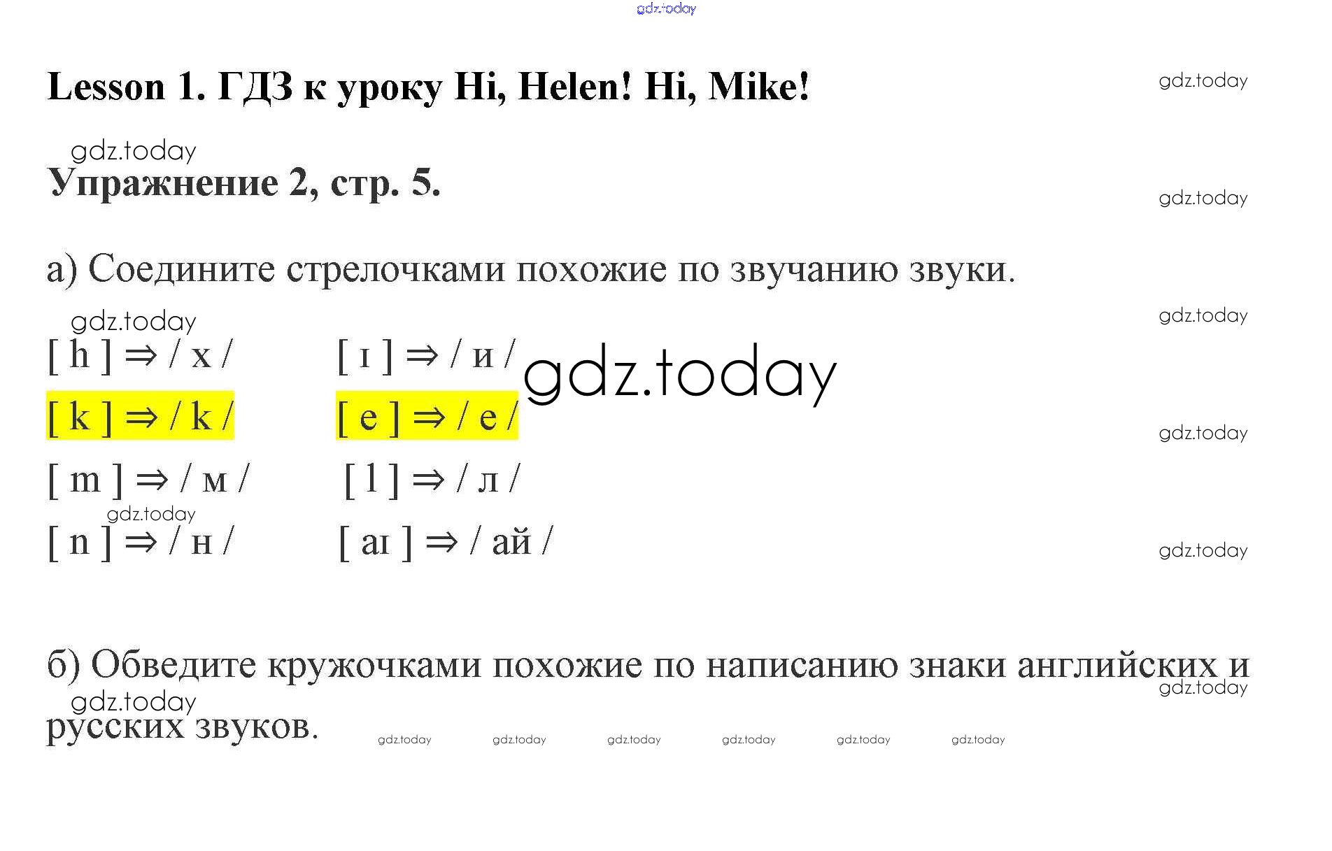 Ответы к Решение. Lesson 1. Hi, Helen! Hi, Mike! 5 Рабочей тетради по Английскому языку для 2 класса Кузовлев, Перегудова Просвещение 2011