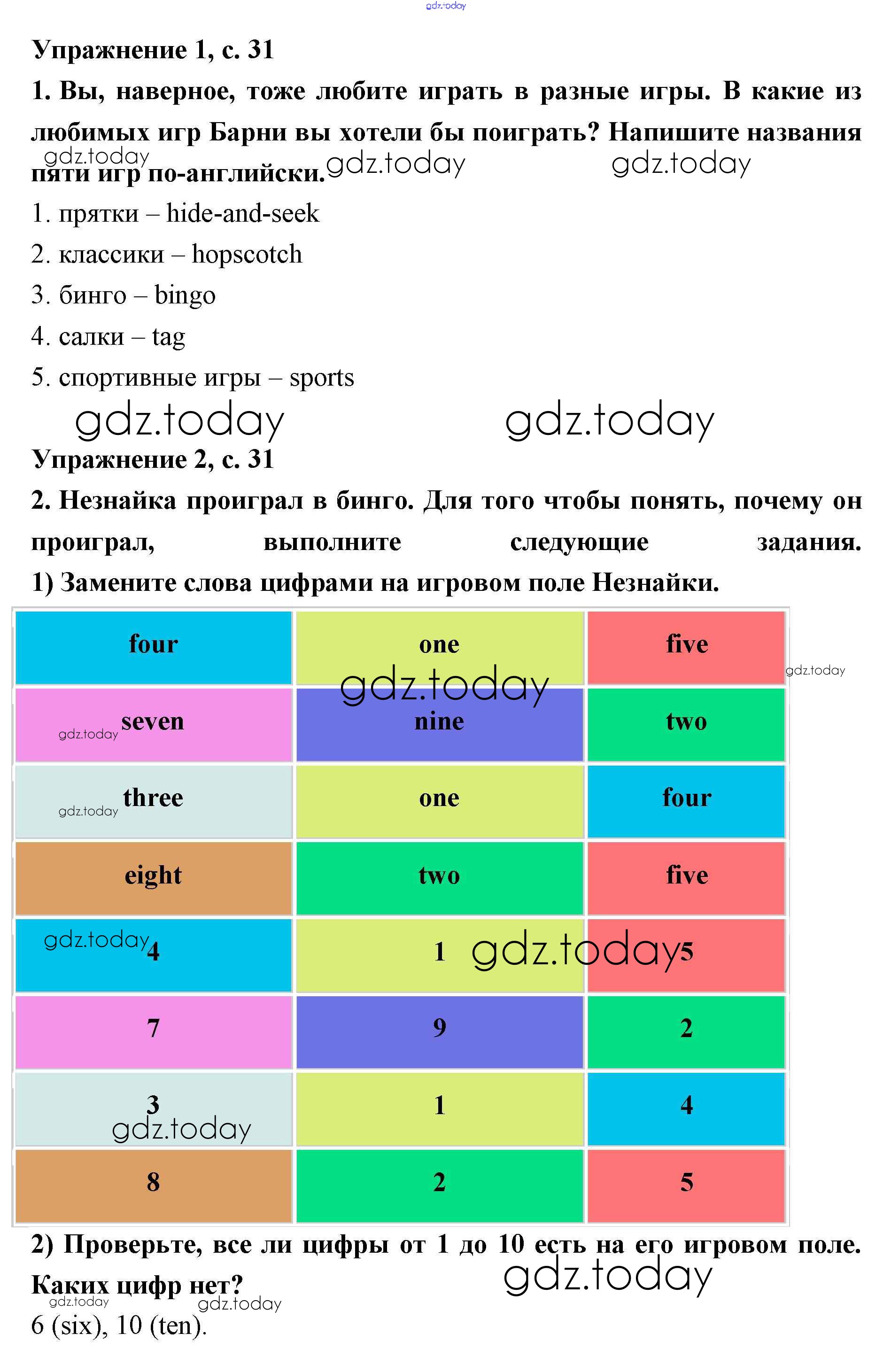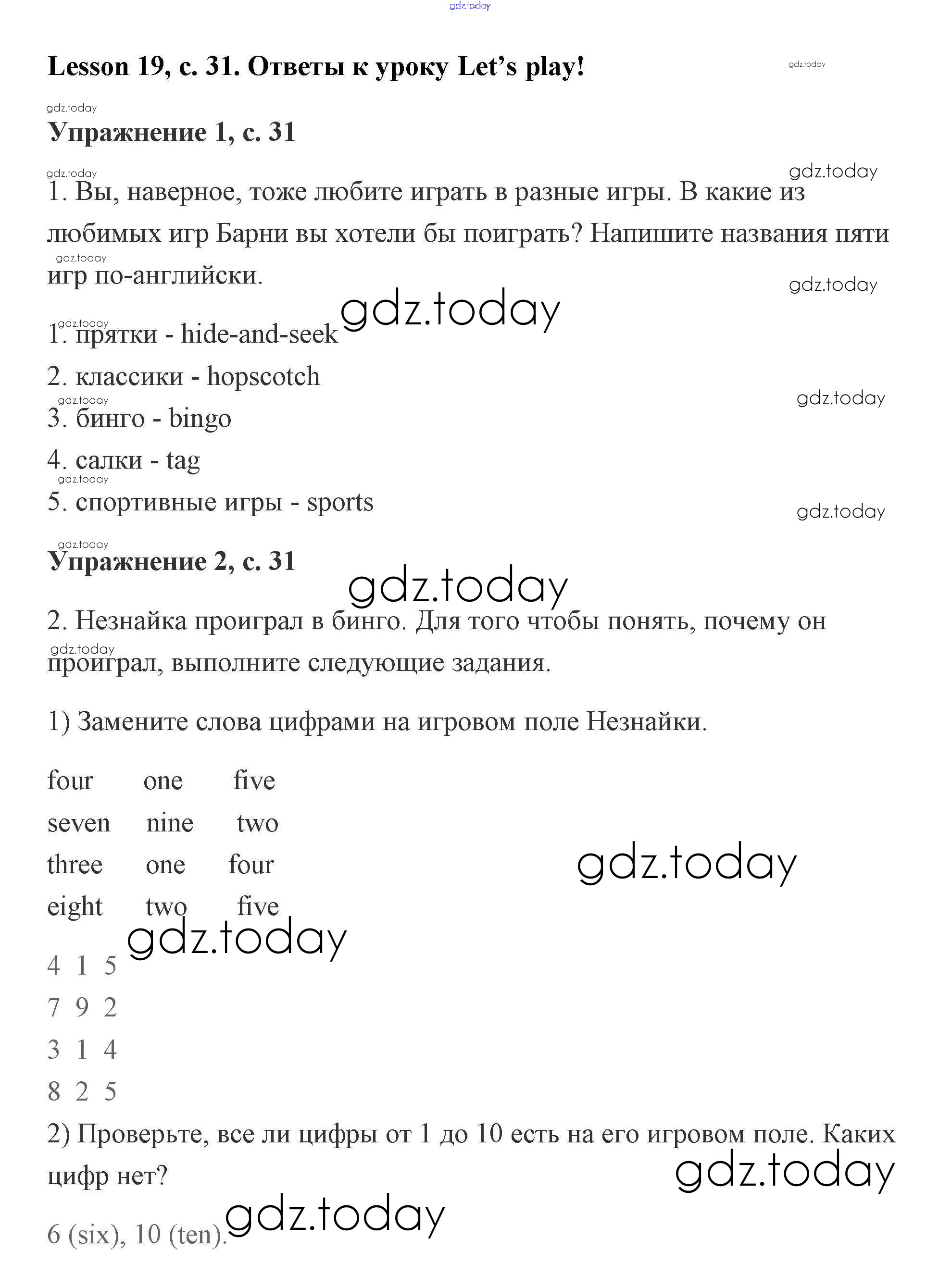 Ответы к Решение. Lesson 19. Let’s play! 31 Рабочей тетради по Английскому языку для 2 класса Кузовлев, Перегудова Просвещение 2011