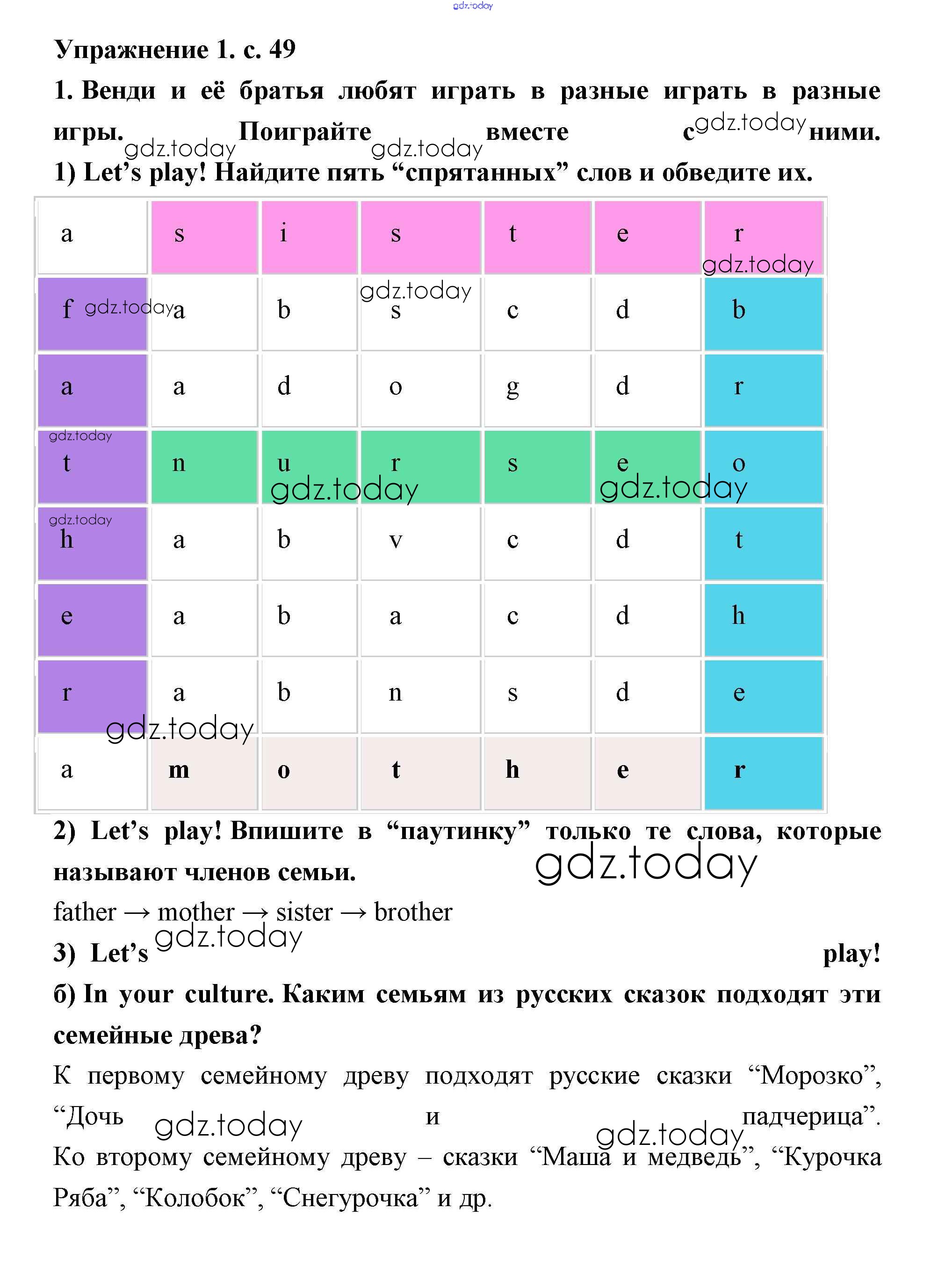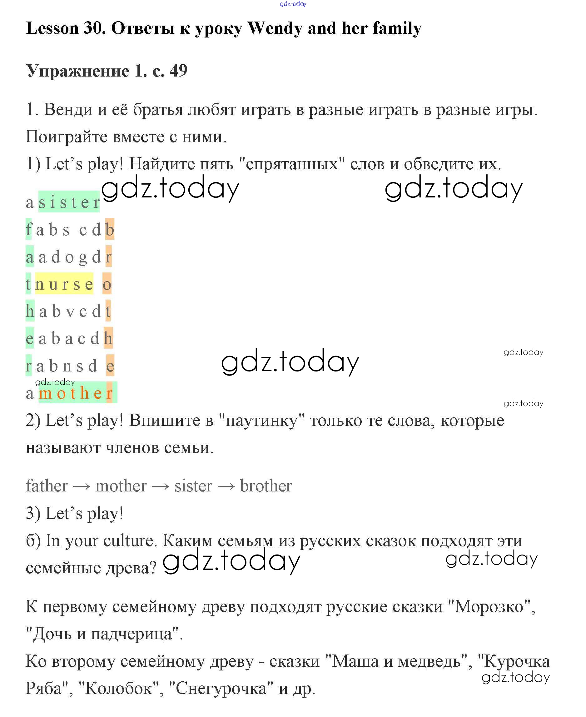 Ответы к Решение. Lesson 30. Wendy and her family 49 Рабочей тетради по Английскому языку для 2 класса Кузовлев, Перегудова Просвещение 2011